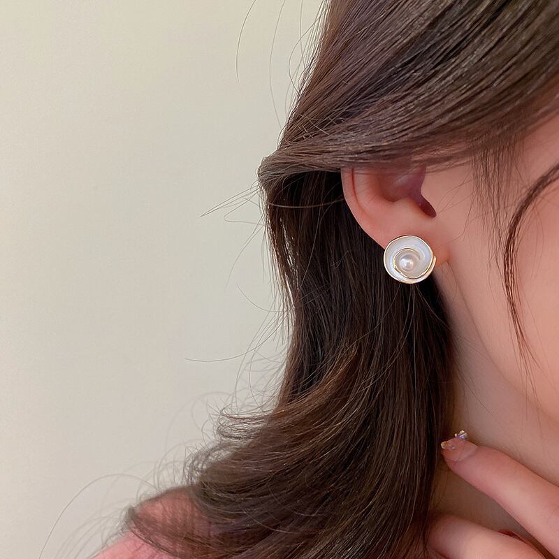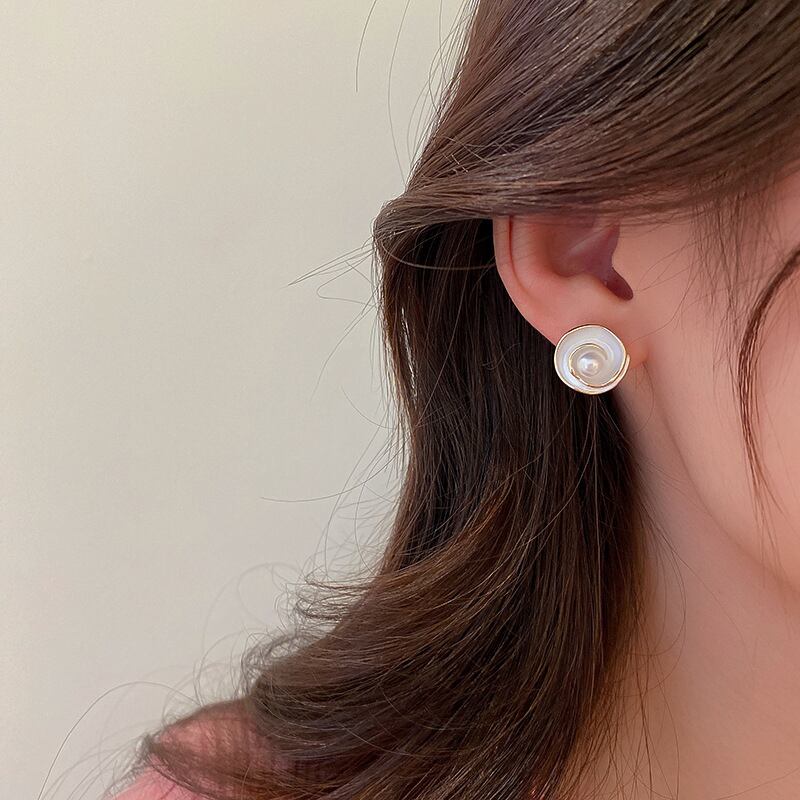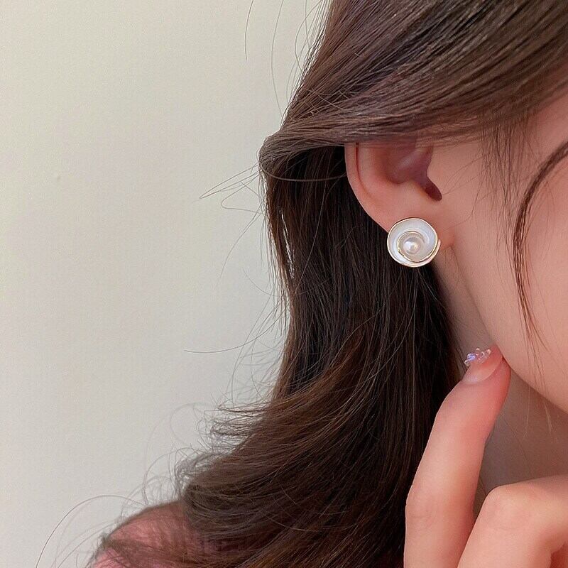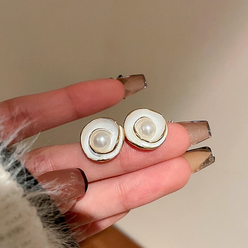 ファイン 14 18K リアルゴールドメッキパールエナメル花イヤリング女性ガール気質ジュエリー S925 シルバーニードルスタッド 真珠 指輪 フラワーデザイン 銀