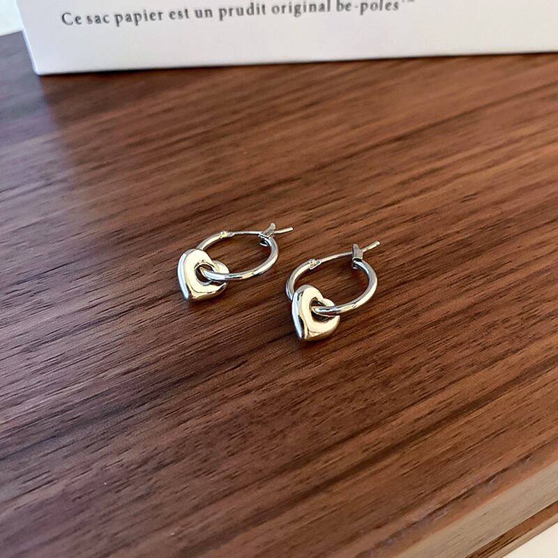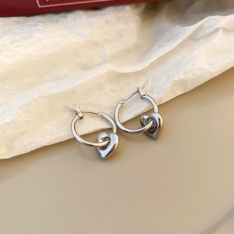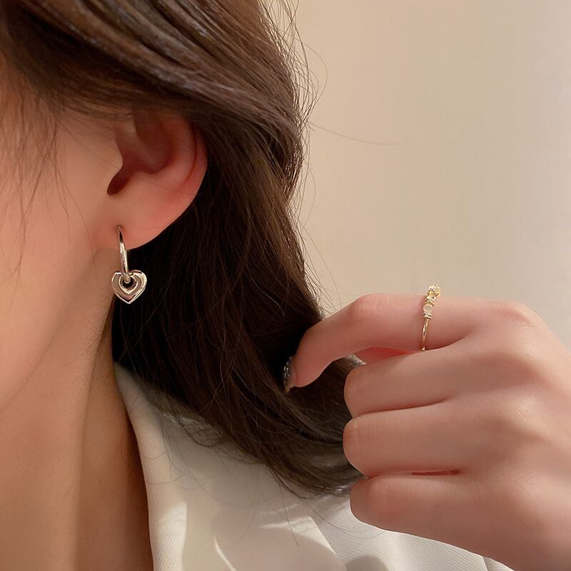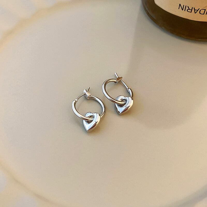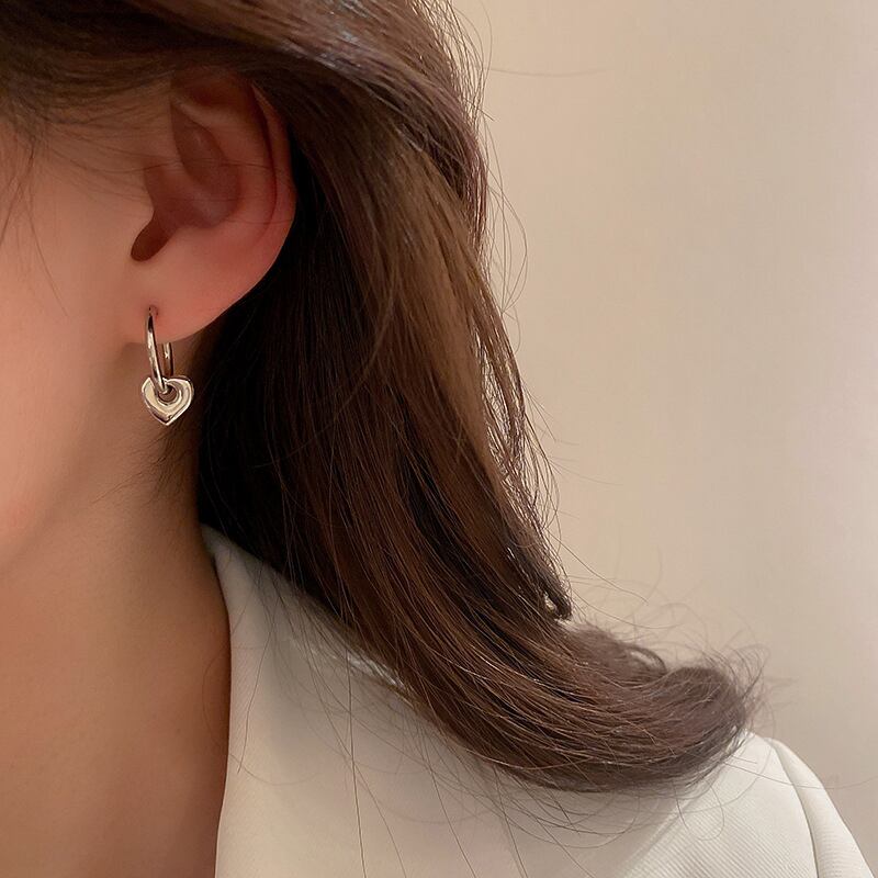 ファイン メッキ シルバー ピーチ ハート イヤリング女性ガール気質ジュエリー バックル タイプ ウェディング パーティー ギフト 指輪 銀