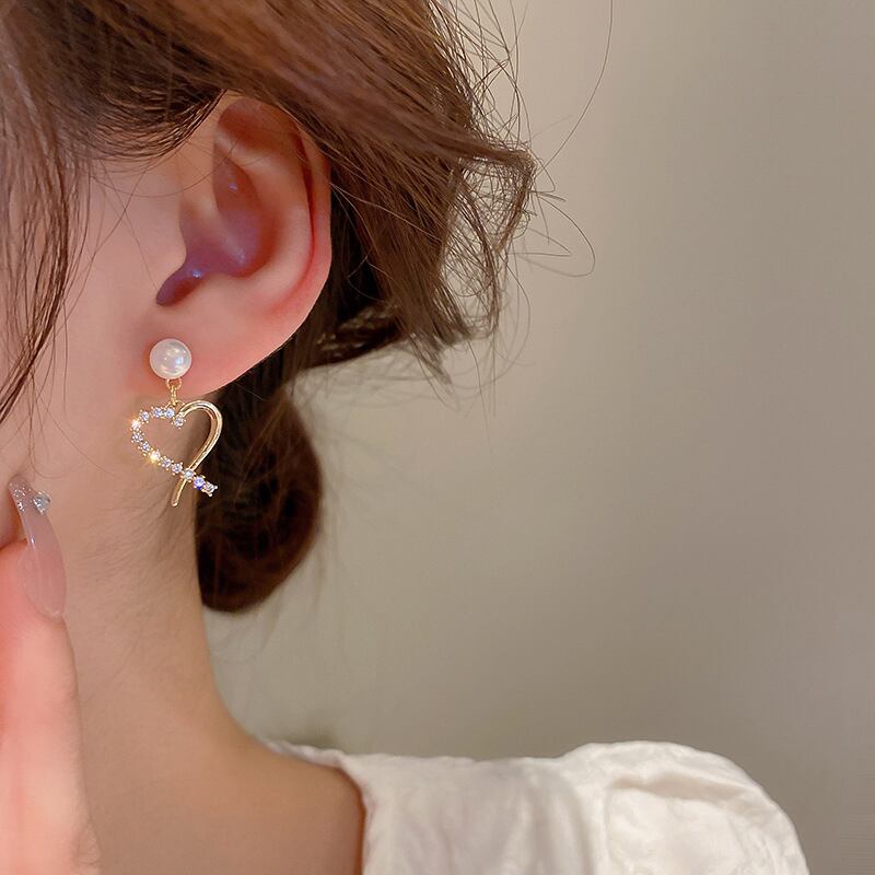 ファイン 14 18K リアルゴールドメッキパールハートイヤリング女性ガールジュエリー AAA ジルコン S925 シルバーニードルパーティーギフト 真珠 指輪 銀