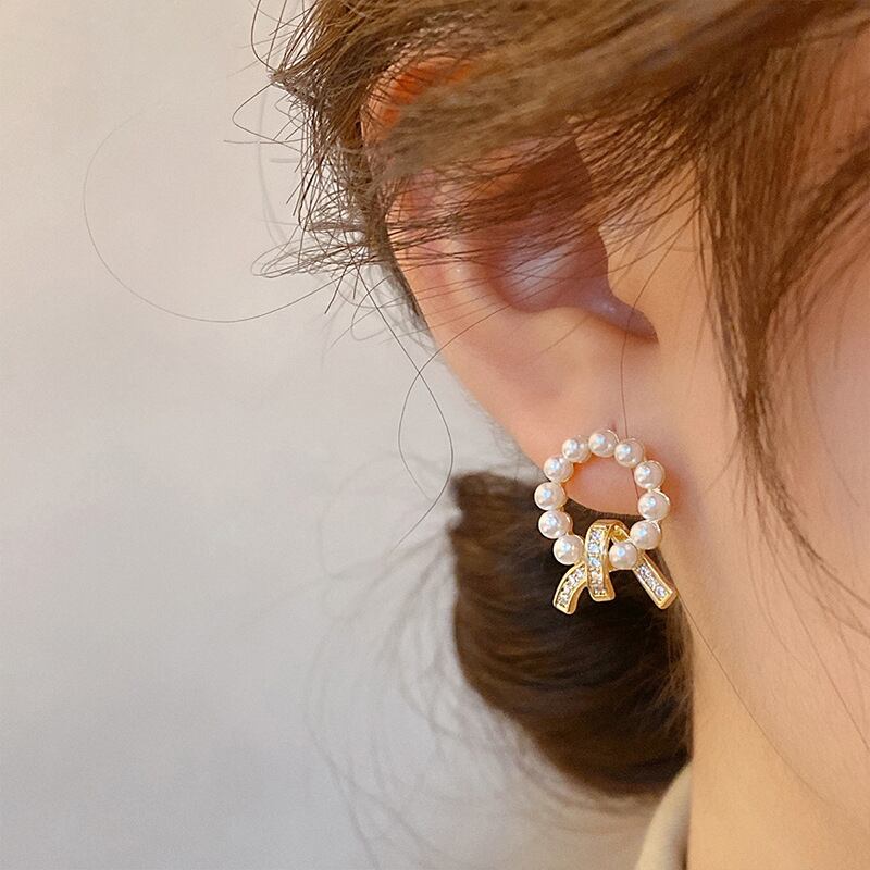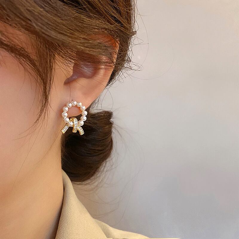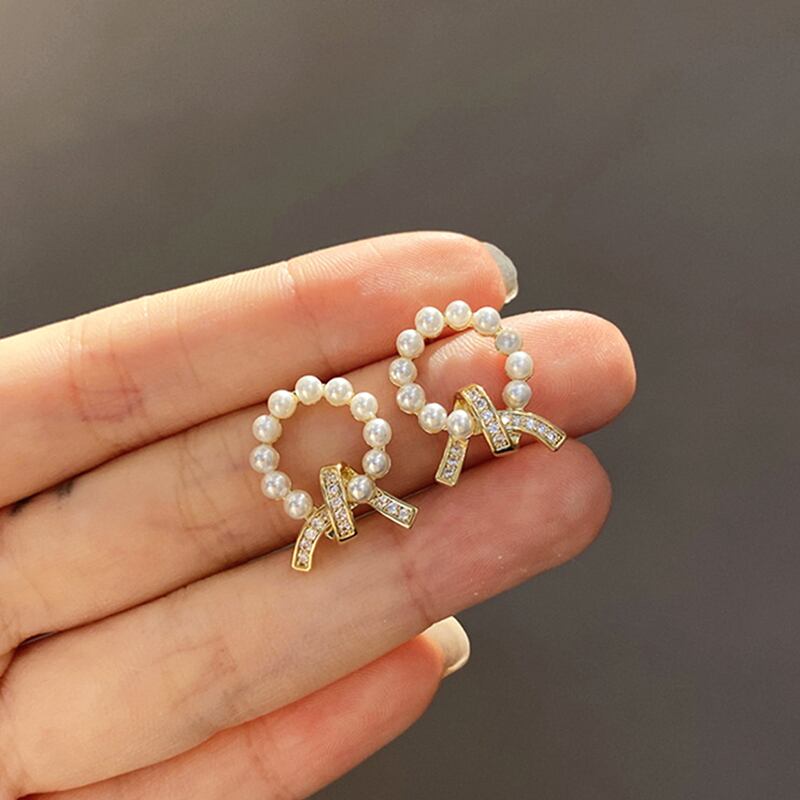 トレンディな 14 18K リアルゴールドメッキサークルパールイヤリング女性ガールジュエリー S925 シルバーニードルスタッド AAA ジルコンギフト 真珠 指輪 銀