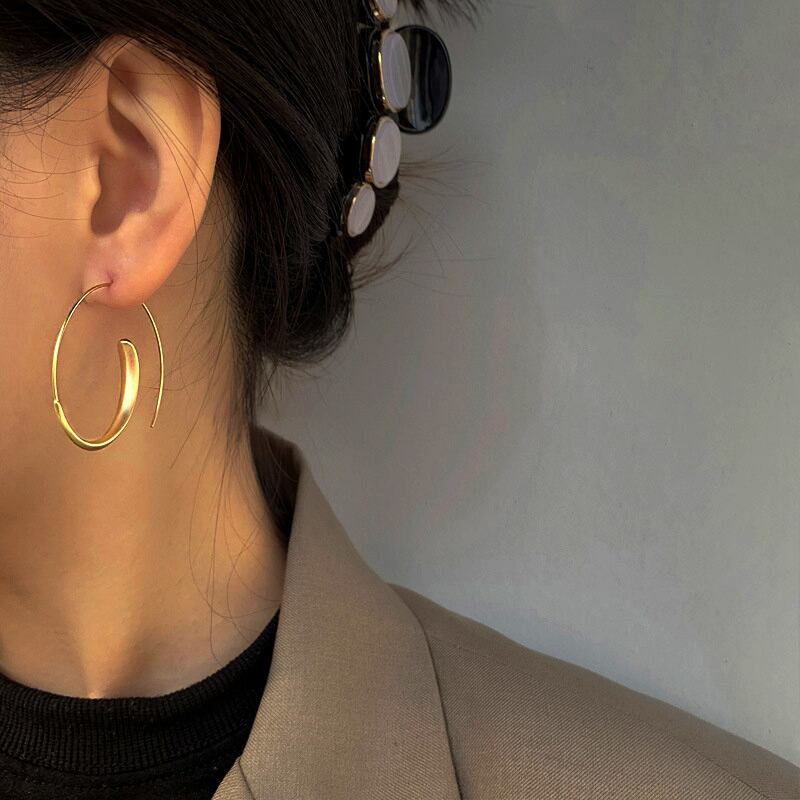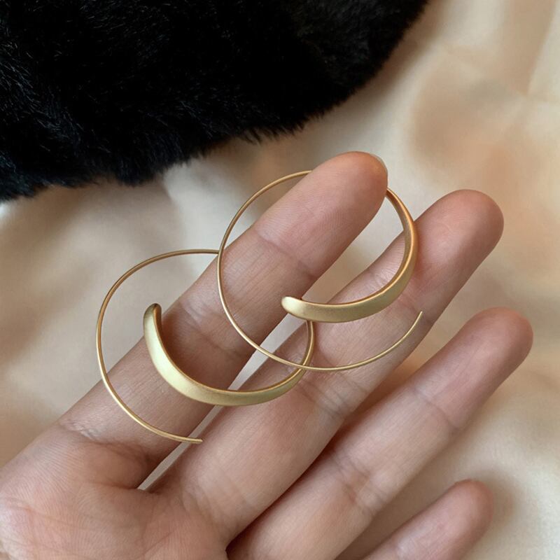 ファイン 14 18K ゴールドメッキマットつや消しテクスチャフープイヤリング女性ガール気質ジュエリー S925 シルバー針ギフト 指輪 銀