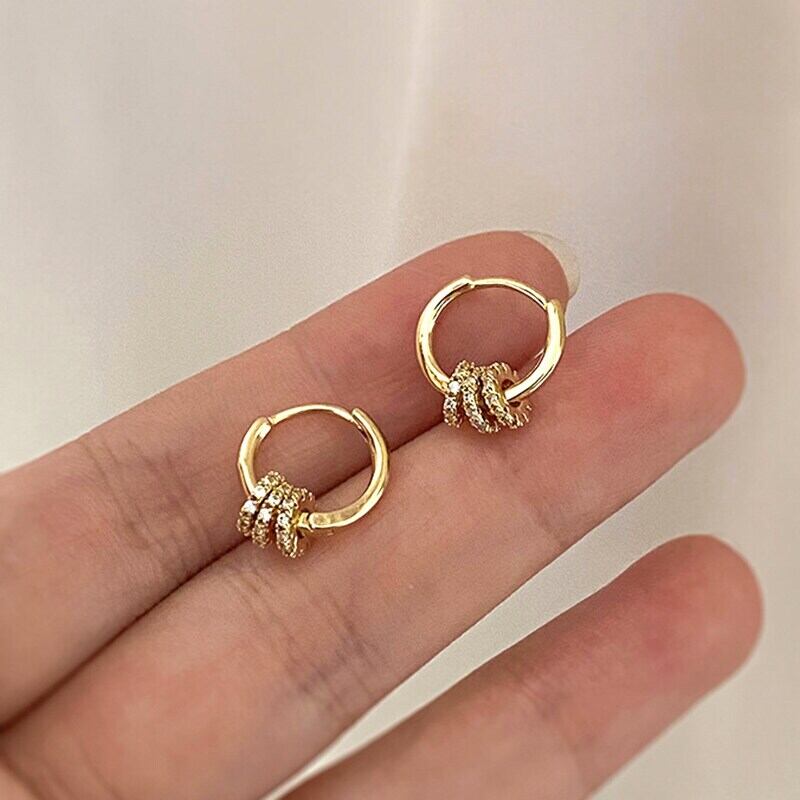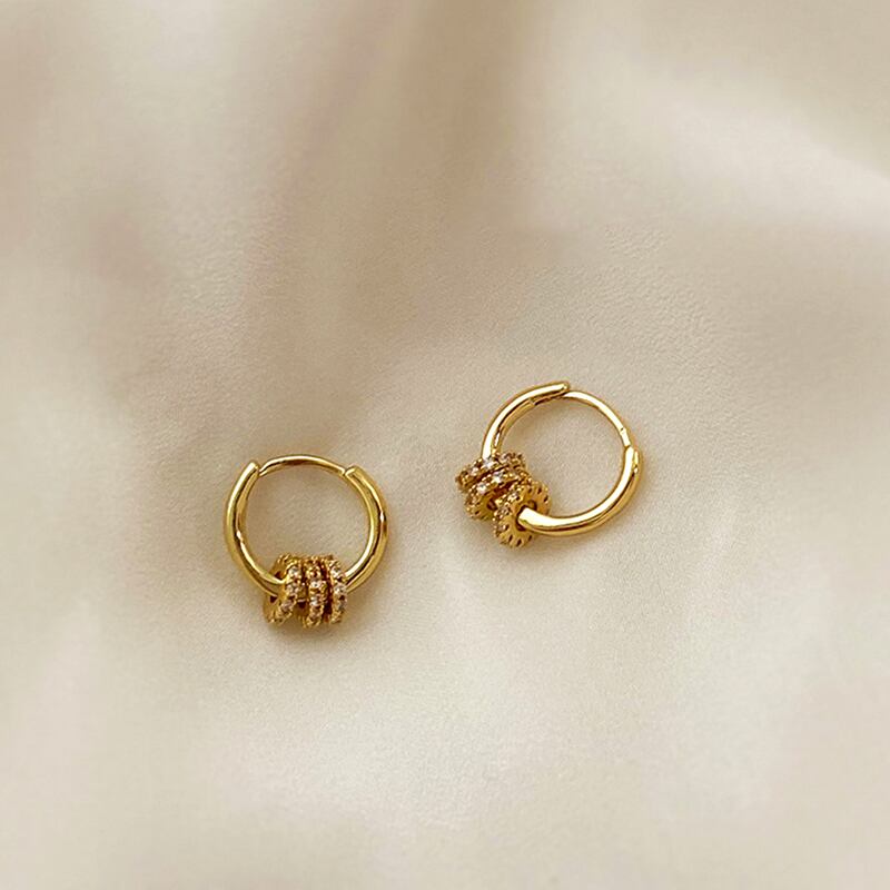 トレンディな 14 18k ゴールドメッキの幾何学的なギア形状サークルフープイヤリング女性ガールジュエリーバックルタイプ AAA ジルコン 指輪