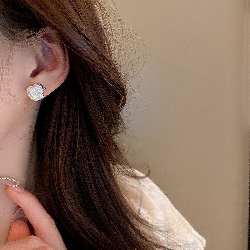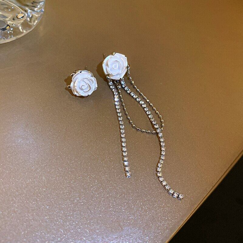 ファインシルバーメッキフラワー Tels イヤリング女性ガール非対称ジュエリー AAA ジルコン S925 シルバー針 指輪 フラワーデザイン 銀