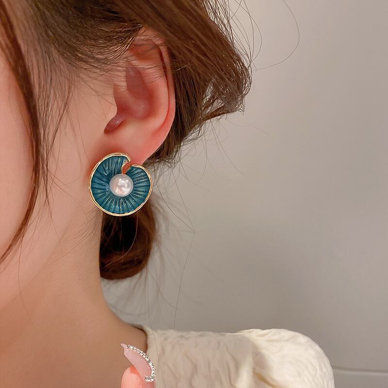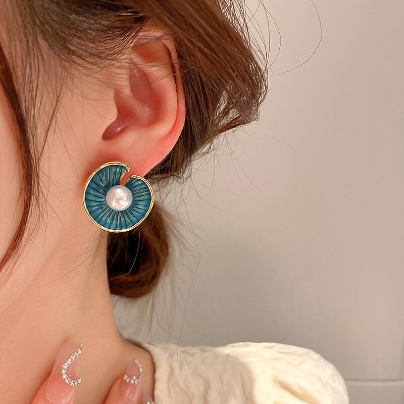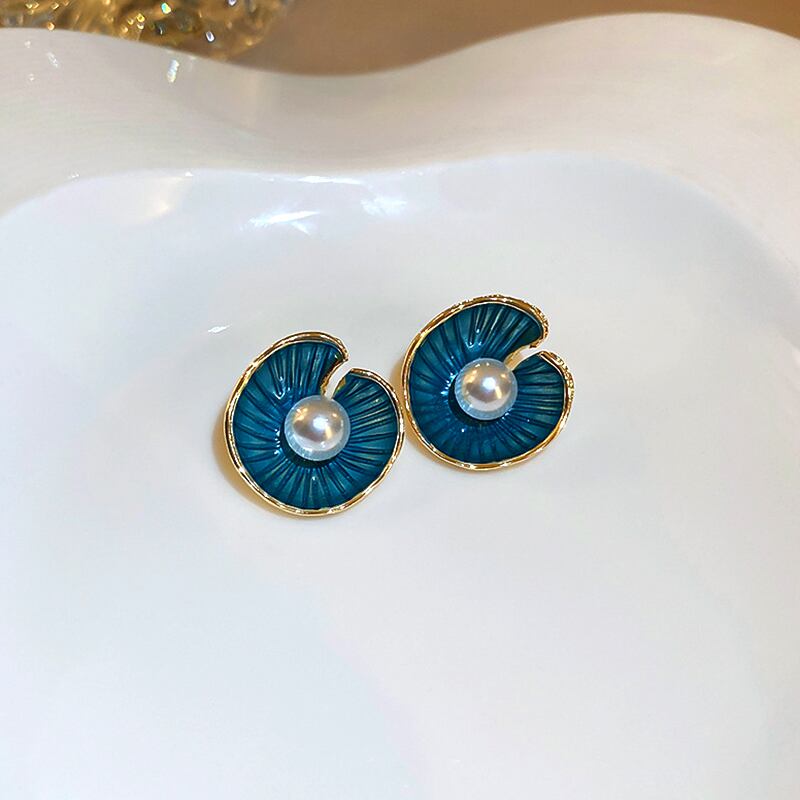 トレンディな 14 18k リアルゴールドメッキシェル型ラウンドパールイヤリング女性ガールジュエリー S925 シルバーニードルスタッド 真珠 指輪 銀