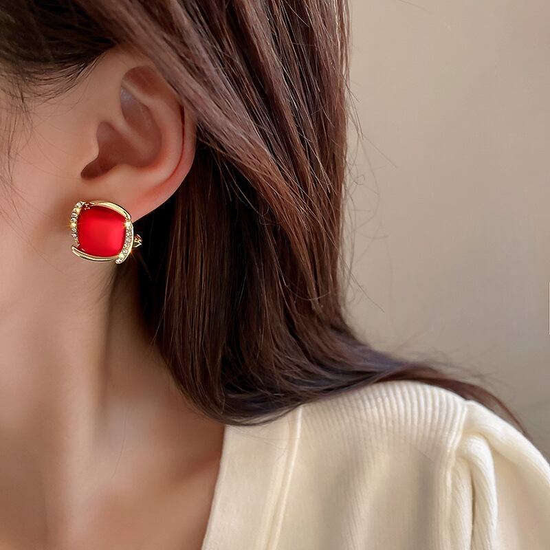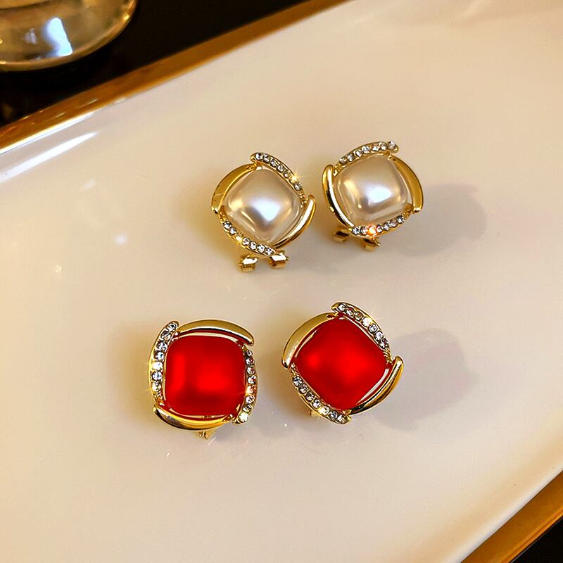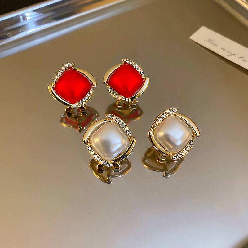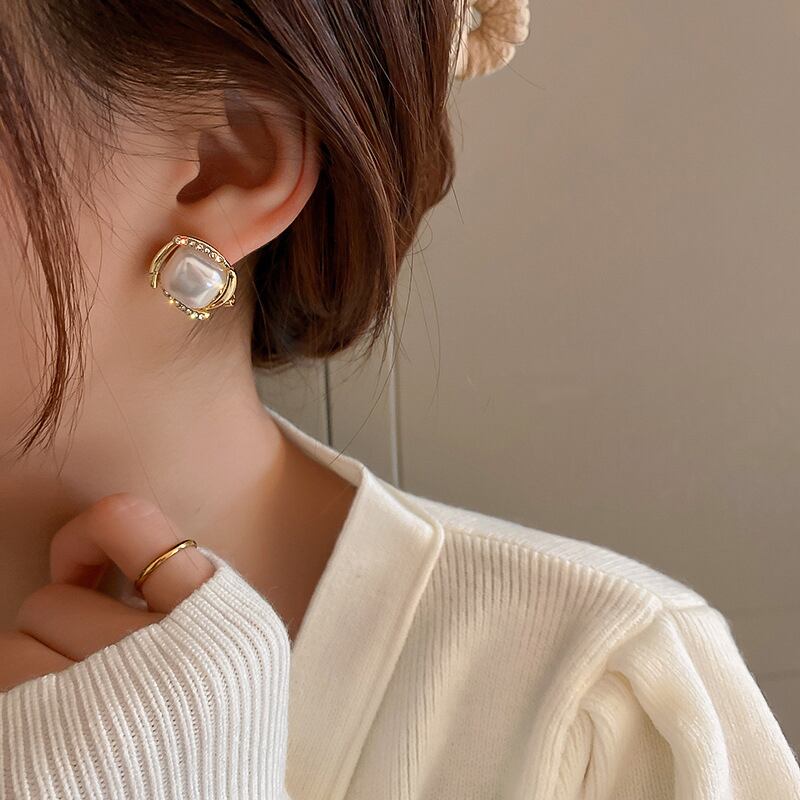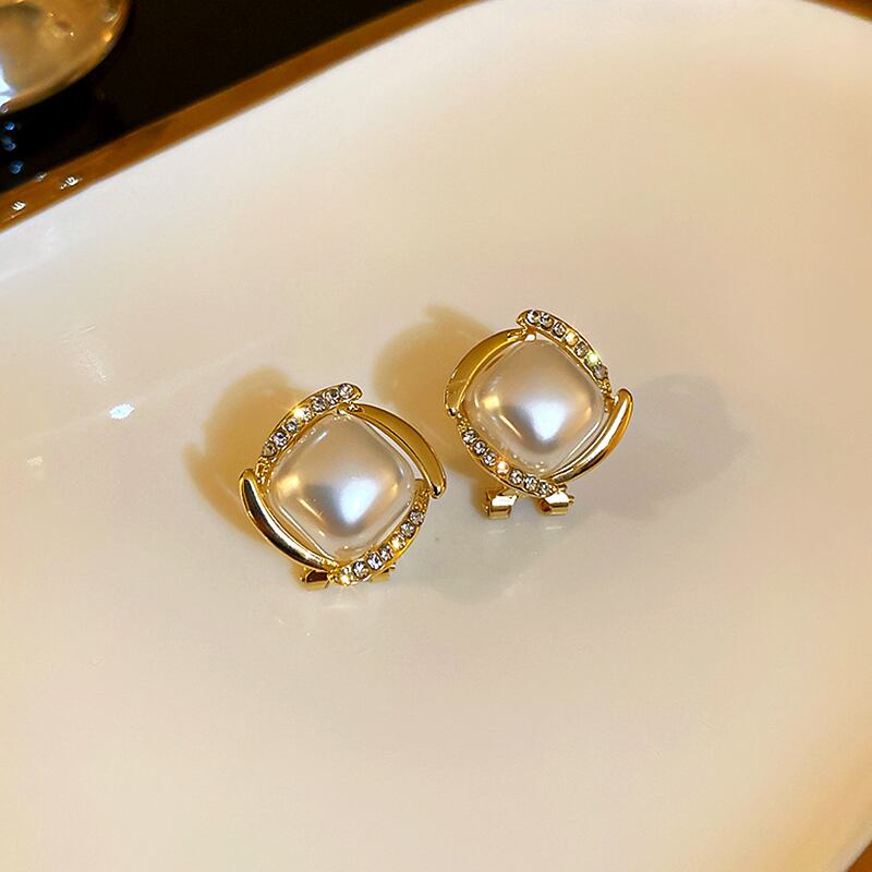ファイン 14 18k リアルゴールドメッキ幾何スクエアパールイヤリング女性ガールジュエリー AAA ジルコン S925 シルバーニードルスタッド 真珠 指輪 銀 スクウェア