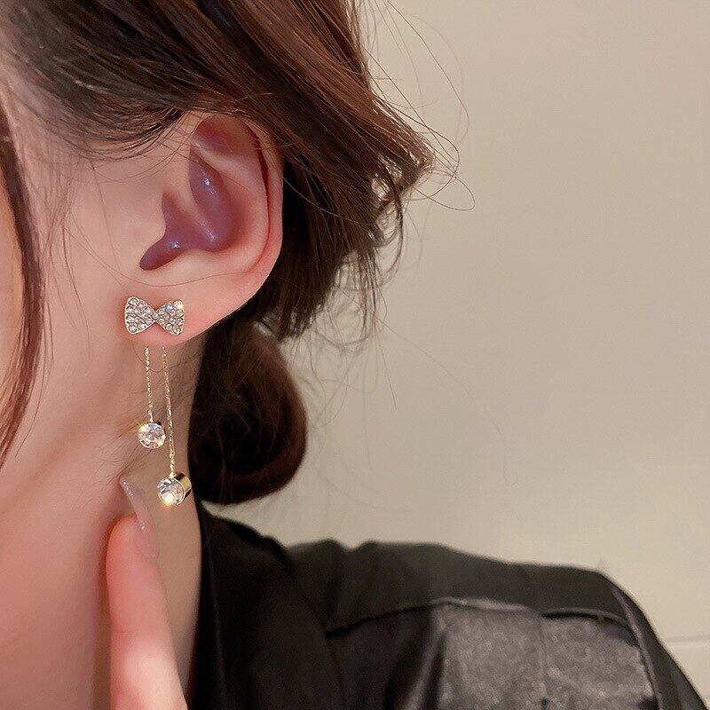 トレンディな 14 18K リアルゴールドメッキちょう結び Tel イヤリング女性ガールジュエリー S925 シルバーニードル AAA ジルコン リボン 指輪 銀
