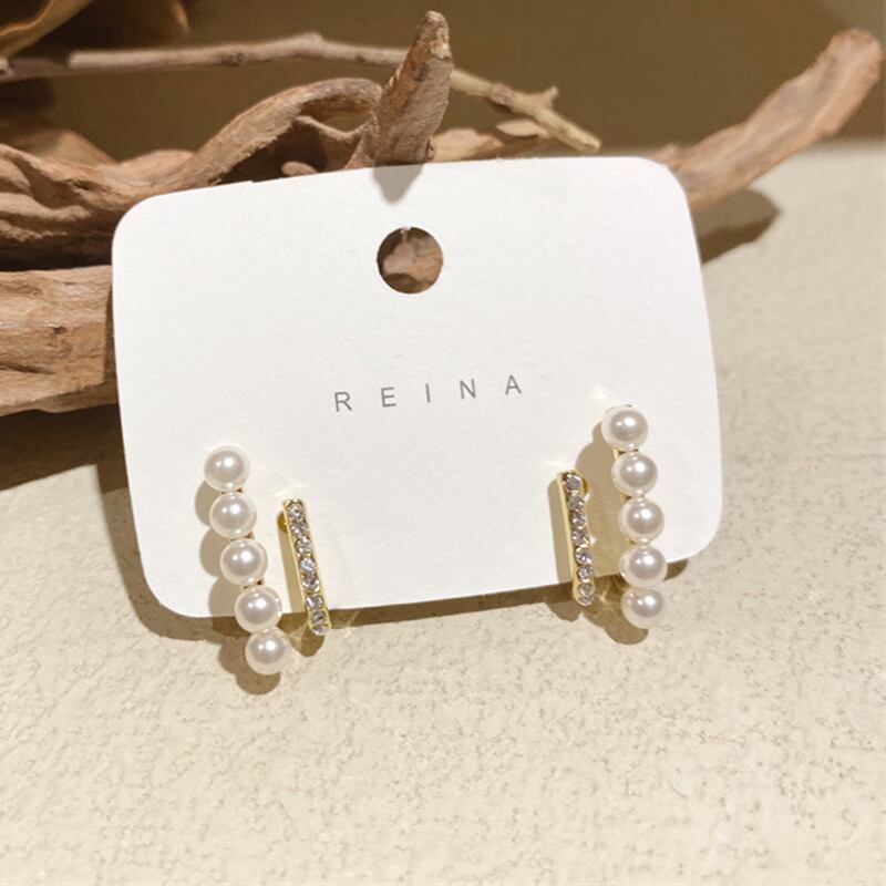 14 18k リアルゴールドメッキパール幾何 C シェイプイヤリング女性ガールジュエリー AAA ジルコン S925 シルバーニードルスタッドギフト 真珠 指輪 銀