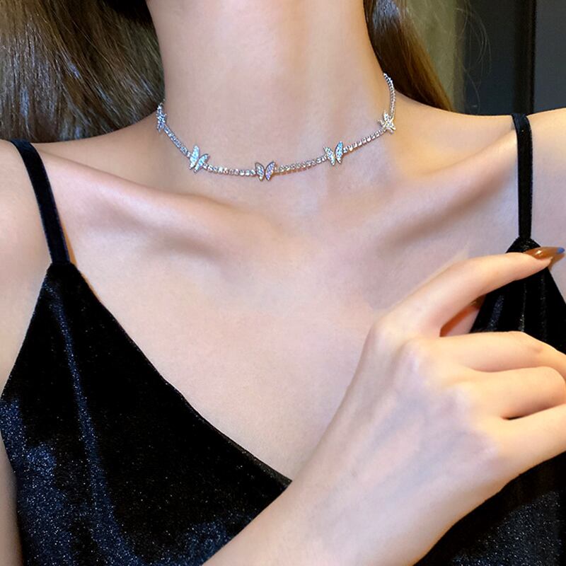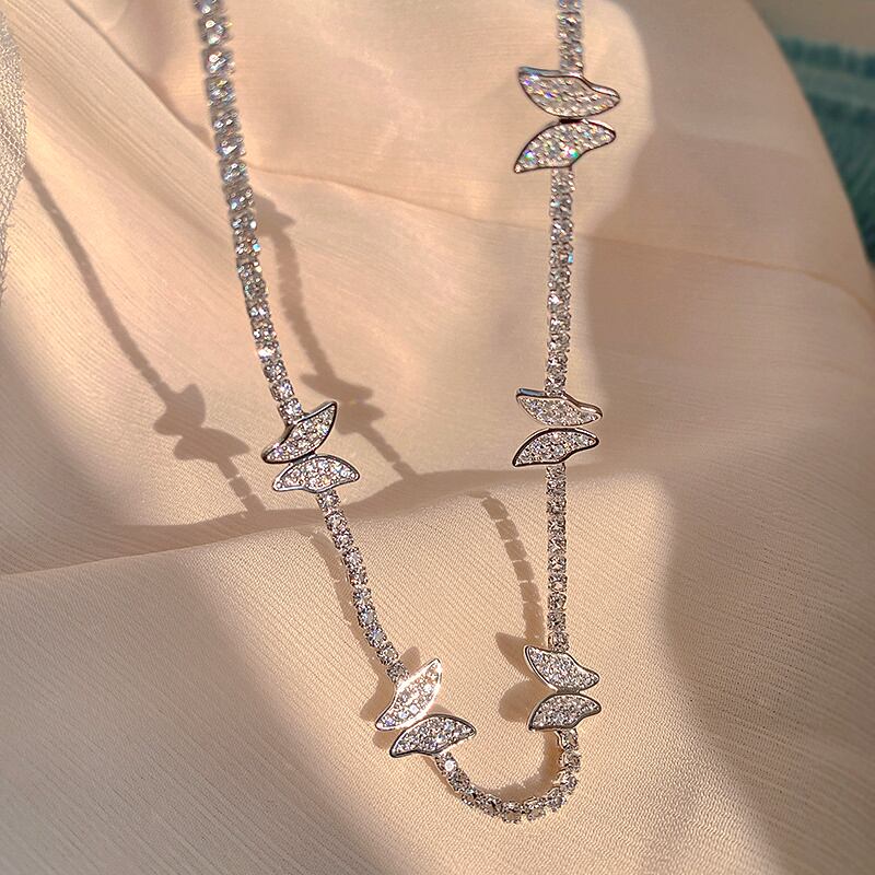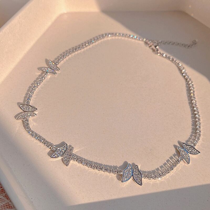 トレンディな蝶のネックレス女性ジュエリーチェーンシャイニー AAA ジルコン夏シンプルな日常卒業ガールギフトホット レース サマー 夏物