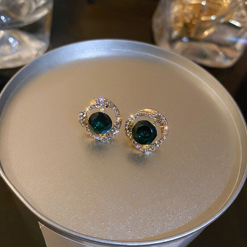 トレンディな 14 18k リアルゴールドメッキ幾何クリスタルイヤリング女性ガールジュエリー S925 シルバーニードルスタッド AAA ジルコン 指輪 銀