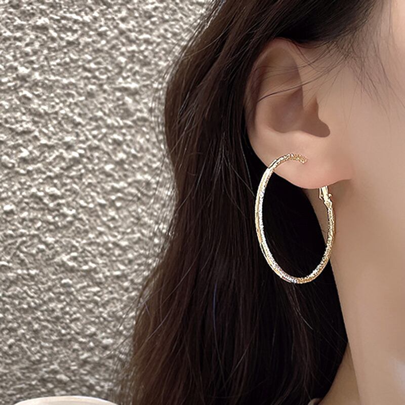 Clic 14 18K リアルゴールドメッキビッグラウンドサークルイヤリング女性フープジュエリー S925 シルバー針シンプルな日常 指輪 銀