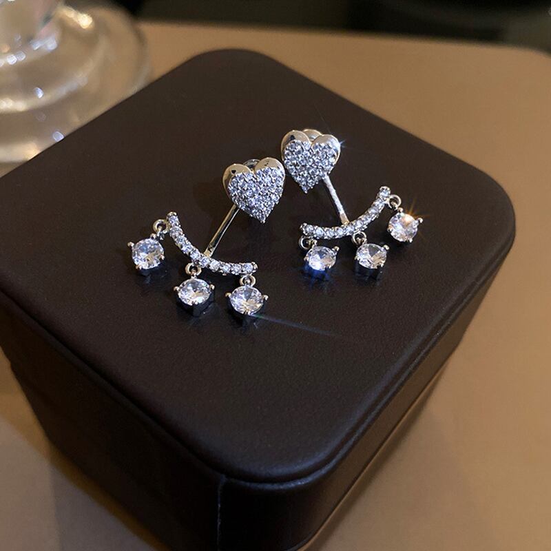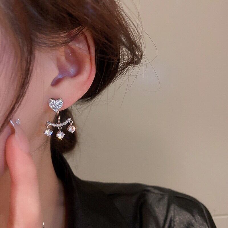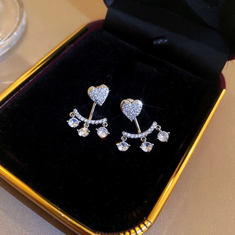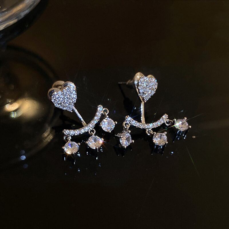 ファインシルバーメッキ幾何ピーチハートイヤリング女性ガールジュエリー AAA ジルコニア S925 シルバーニードルスタッドギフト 指輪 銀 風信子石