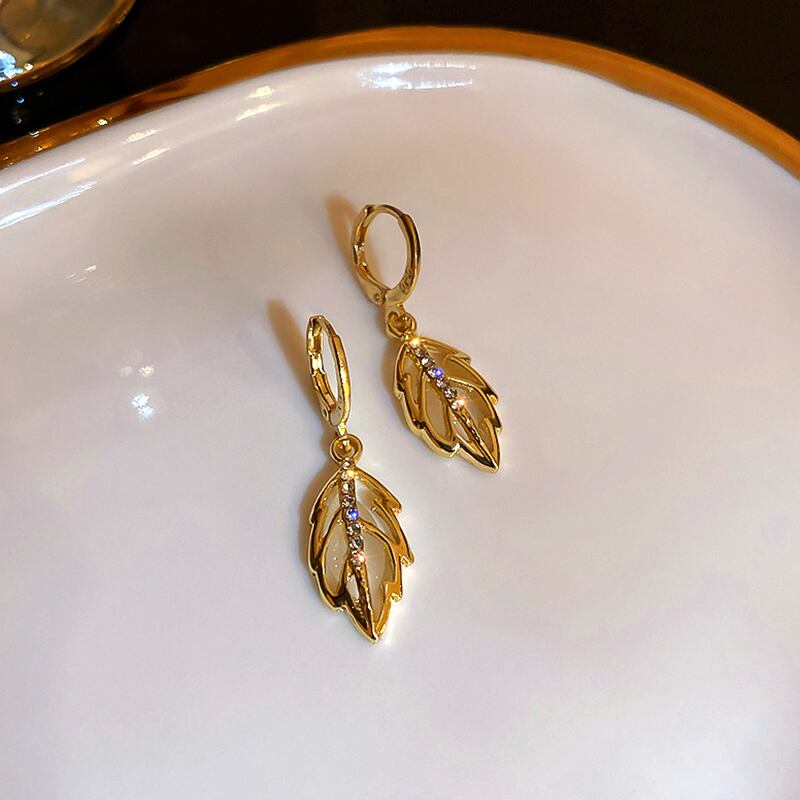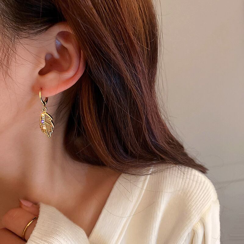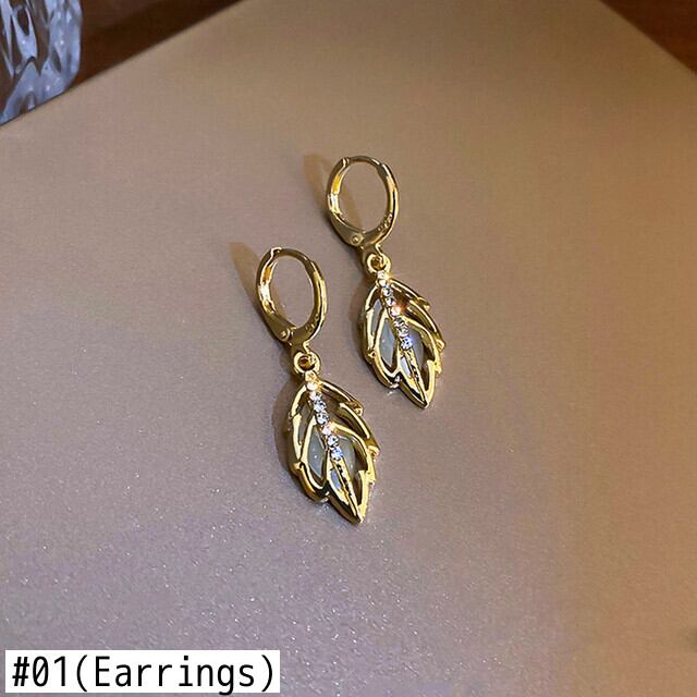 ファイン 14 18K ゴールドメッキオパール葉イヤリング女性ガールバックルジュエリー AAA ジルコン結婚式誕生日パーティーギフト 蛋白石 指輪
