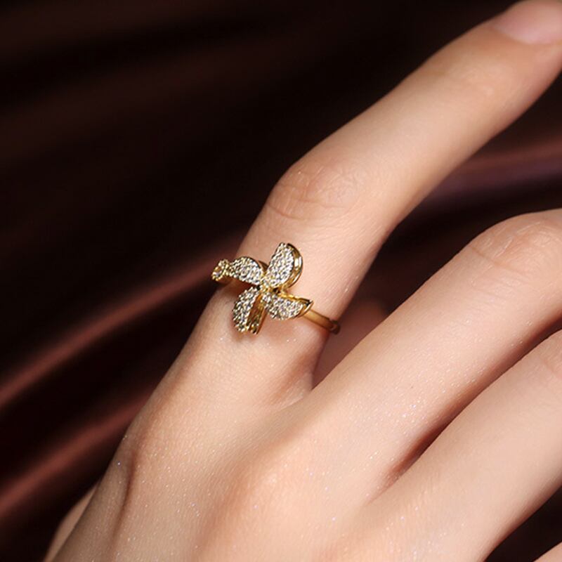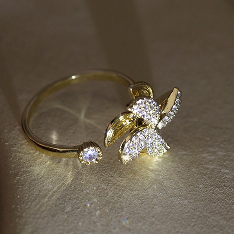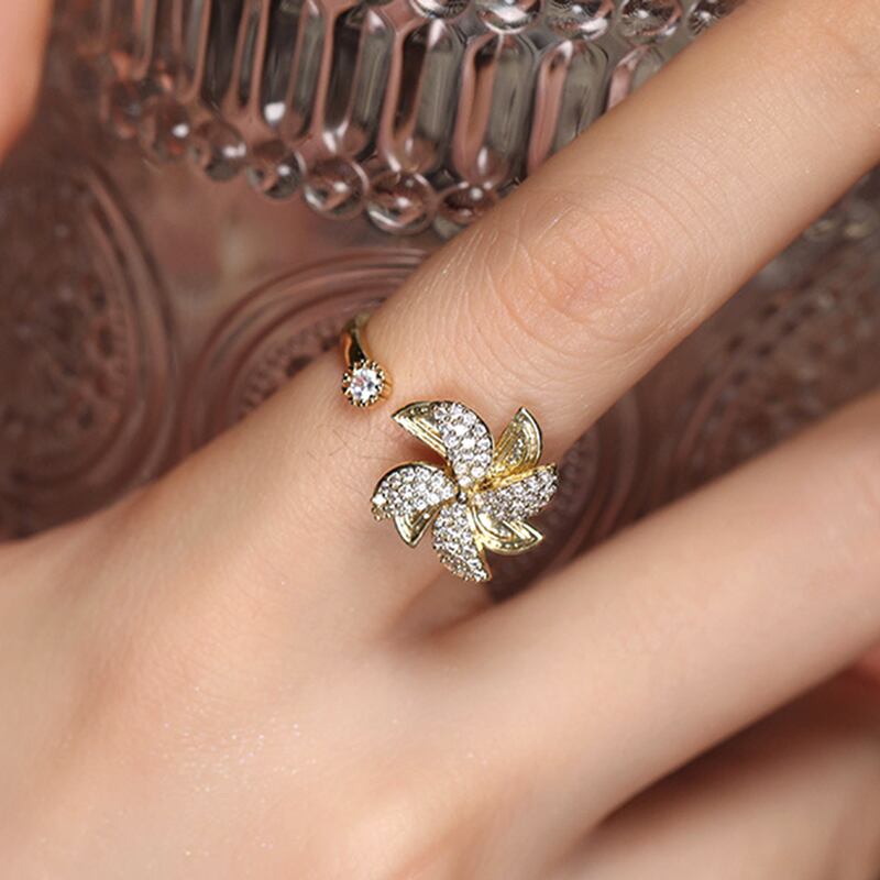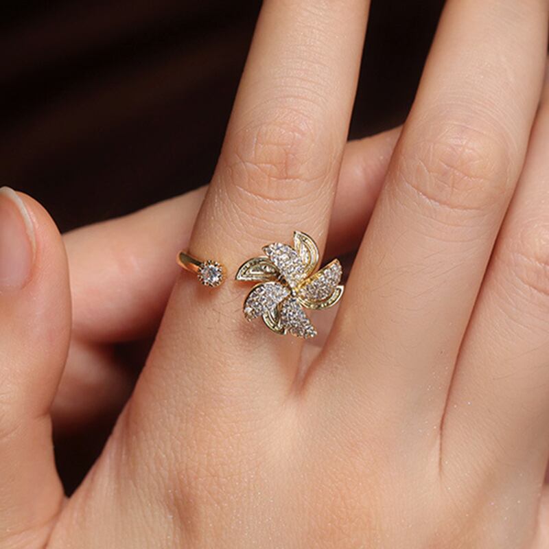 トレンディな 14 18K リアルゴールド充填回転式風車リング女性ラッキージュエリーシャイニー AAA ジルコンシンプルな日常のギフト 指輪