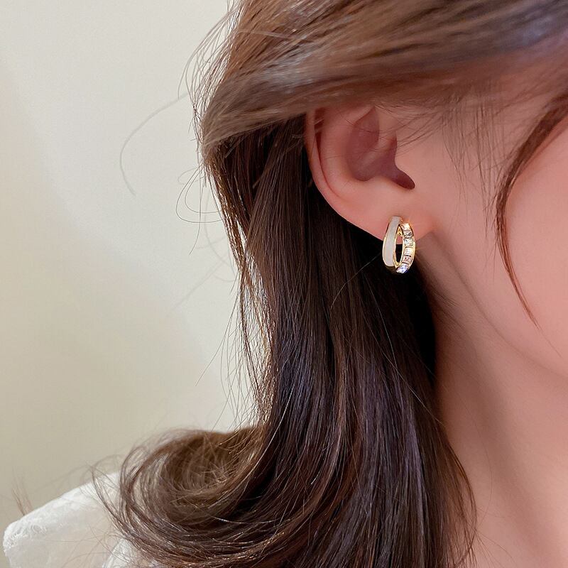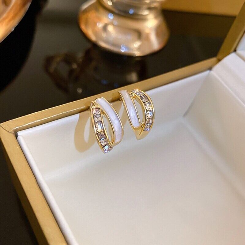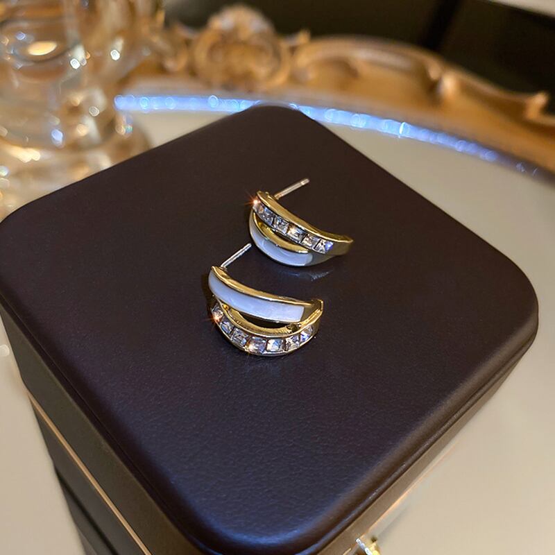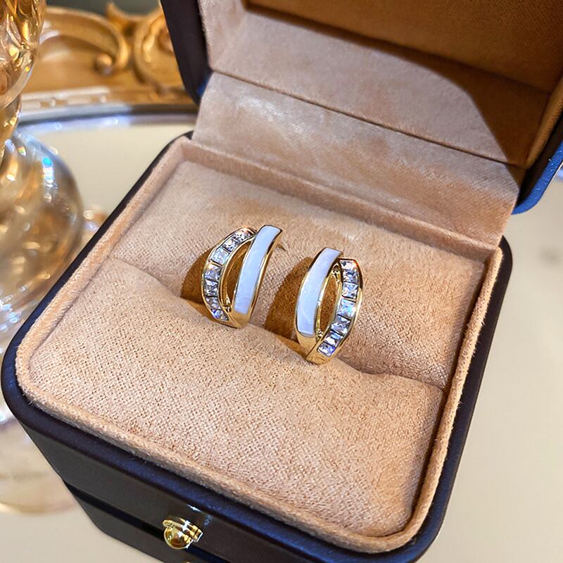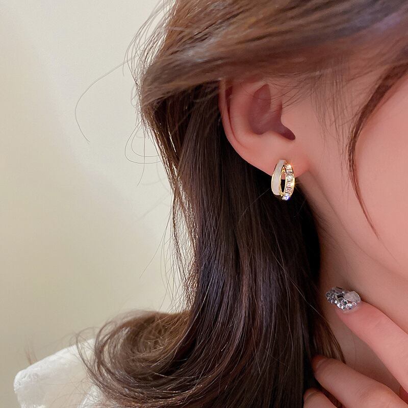 トレンディファイン 14 18K リアルゴールドメッキ幾何 C 字型エナメルイヤリング女性ガールジュエリー S925 シルバーニードルスタッド AAA ジルコン 指輪 銀