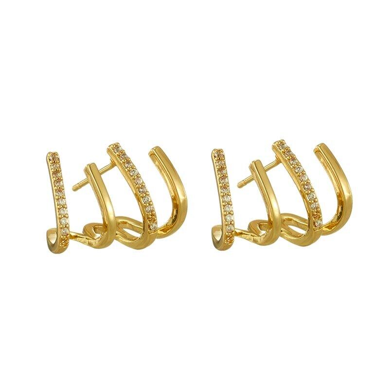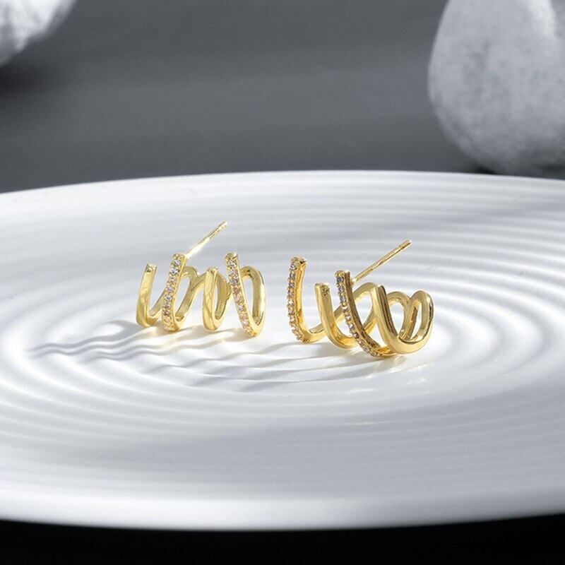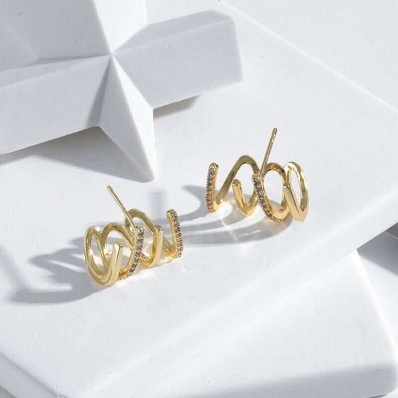 トレンディな 18 18K リアルゴールドメッキスパイラルジオメトリイヤリング女性の高級ジュエリーシャイニー AAA ジルコン S925 シルバー針 指輪 銀