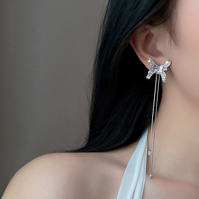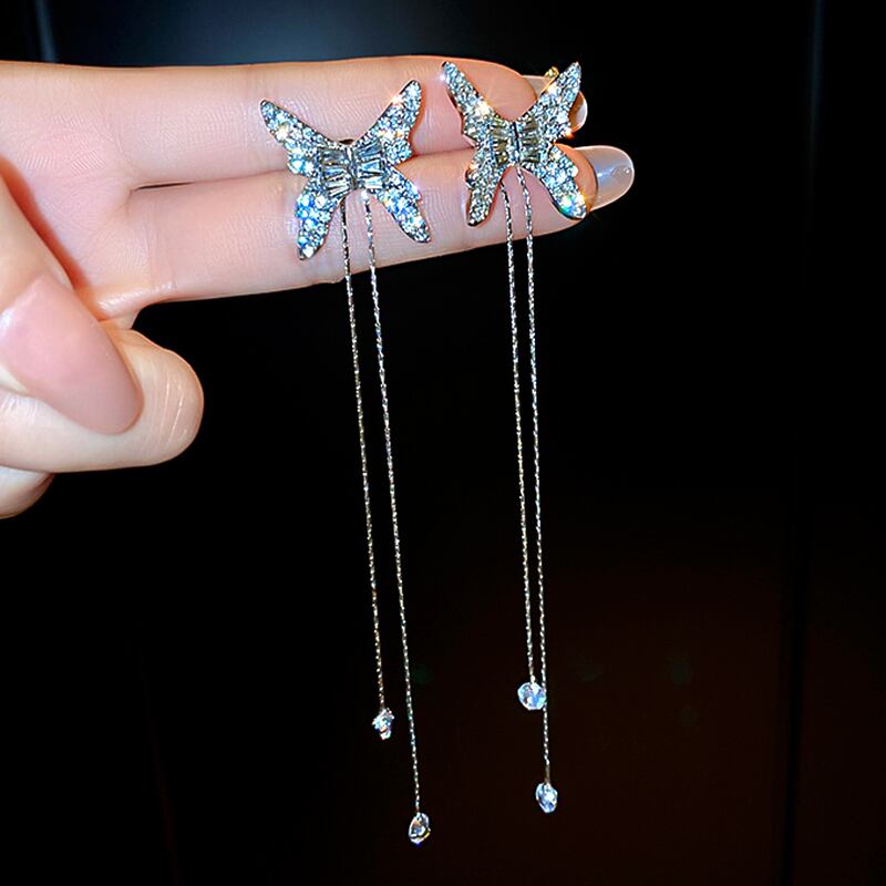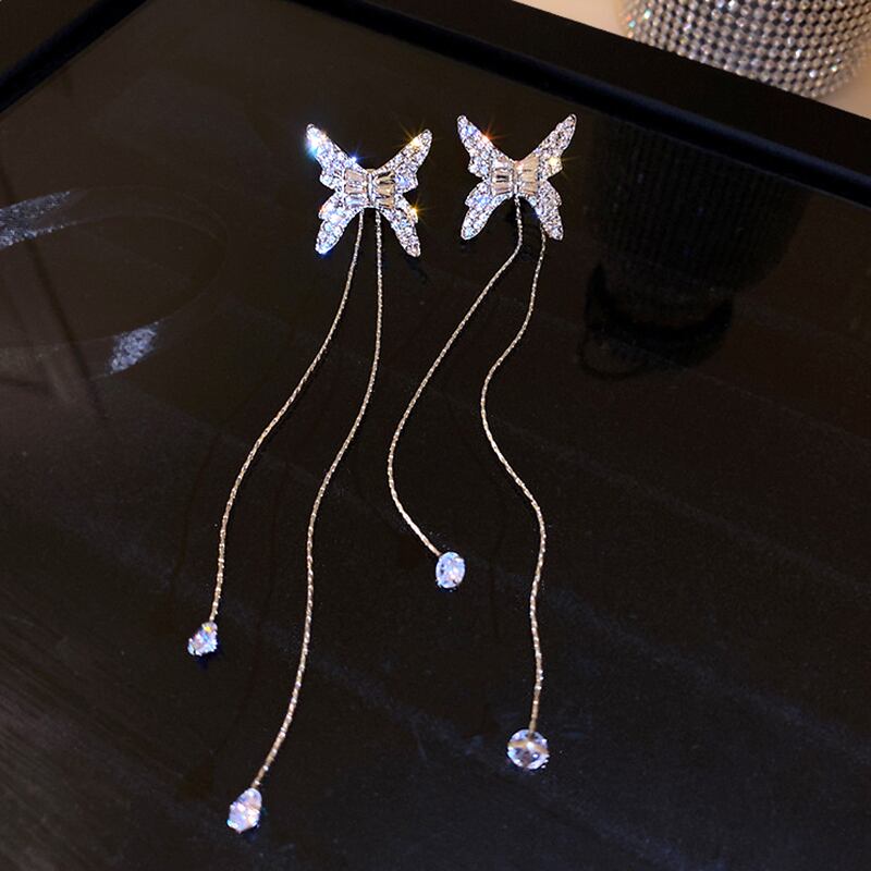 トレンディな 925 シルバークリスタルバタフライ Tel イヤリング女性ジュエリー S925 シルバー針シャイニー AAA ジルコンギフト 指輪 銀