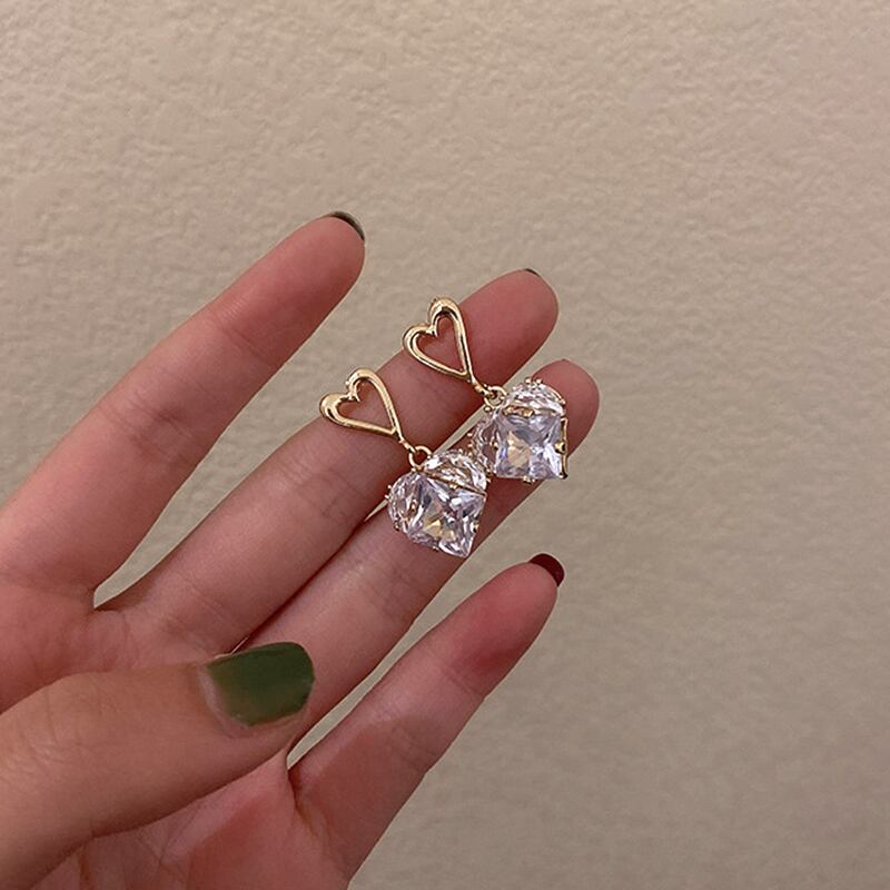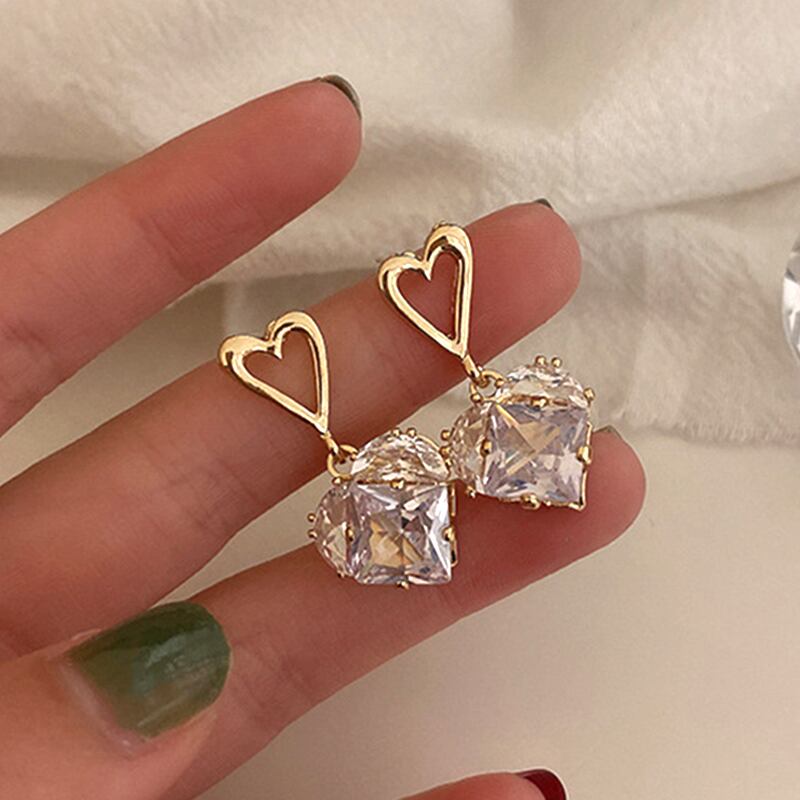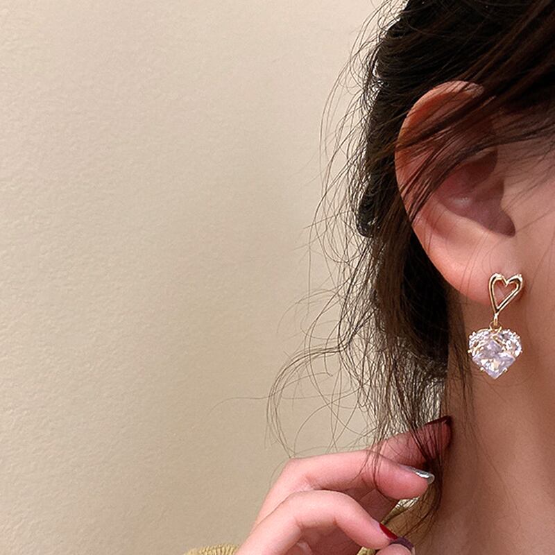 トレンディな 14 18K リアルゴールドクリスタル Heartearrings 女性アクセサリージュエリー S925 シルバー針シャイニージルコンインギフト イヤリング リング 指輪 銀