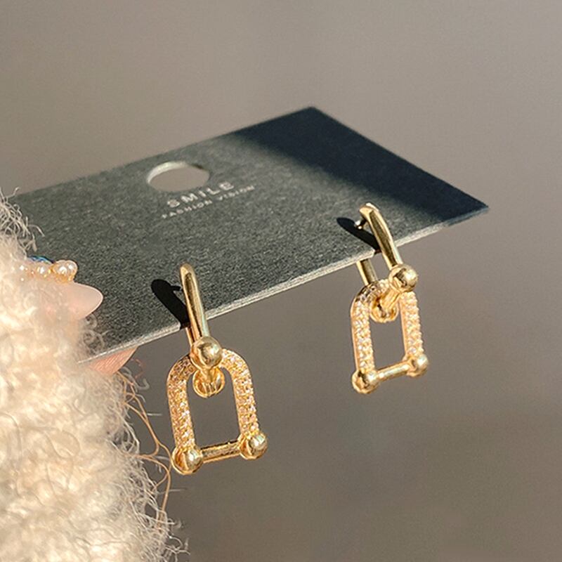 トレンディな 14 18K リアルゴールドジオメトリイヤリング女性ジュエリー S925 シルバー針シャイニー AAA ジルコンギフト 指輪 銀