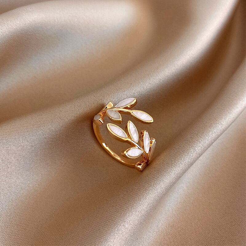 トレンド 14 18k リアルゴールドメッキ葉リング女性ガール調節可能なオープニングアクセサリージュエリーウェディングパーティーギフト アジャスタブル 指輪
