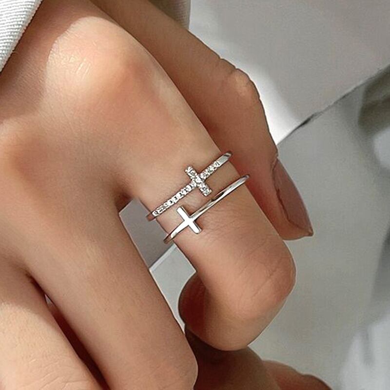 トレンディな 14 18K リアルゴールド充填二重層クロスリング女性ジュエリーシャイニー AAA ジルコンシンプルな日常着ギフト 指輪