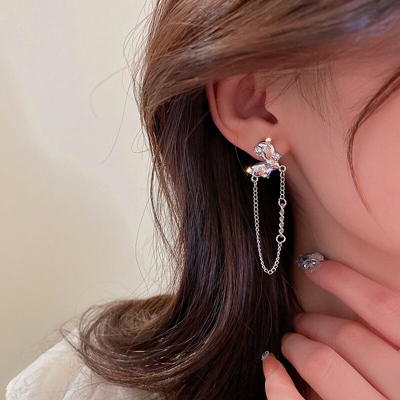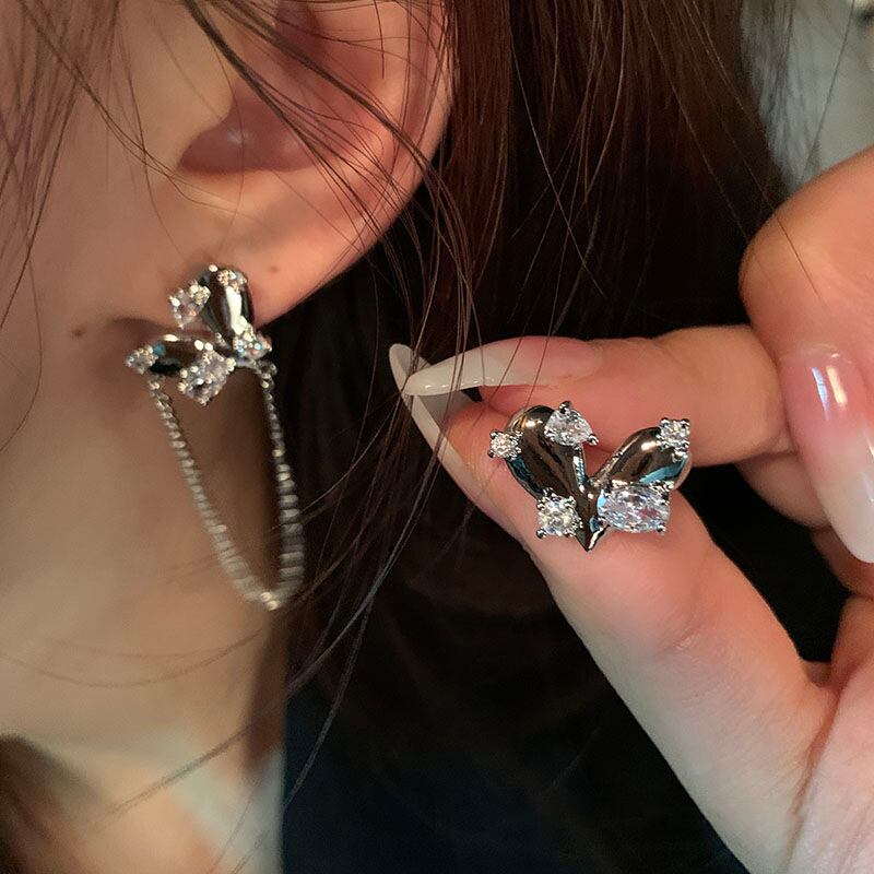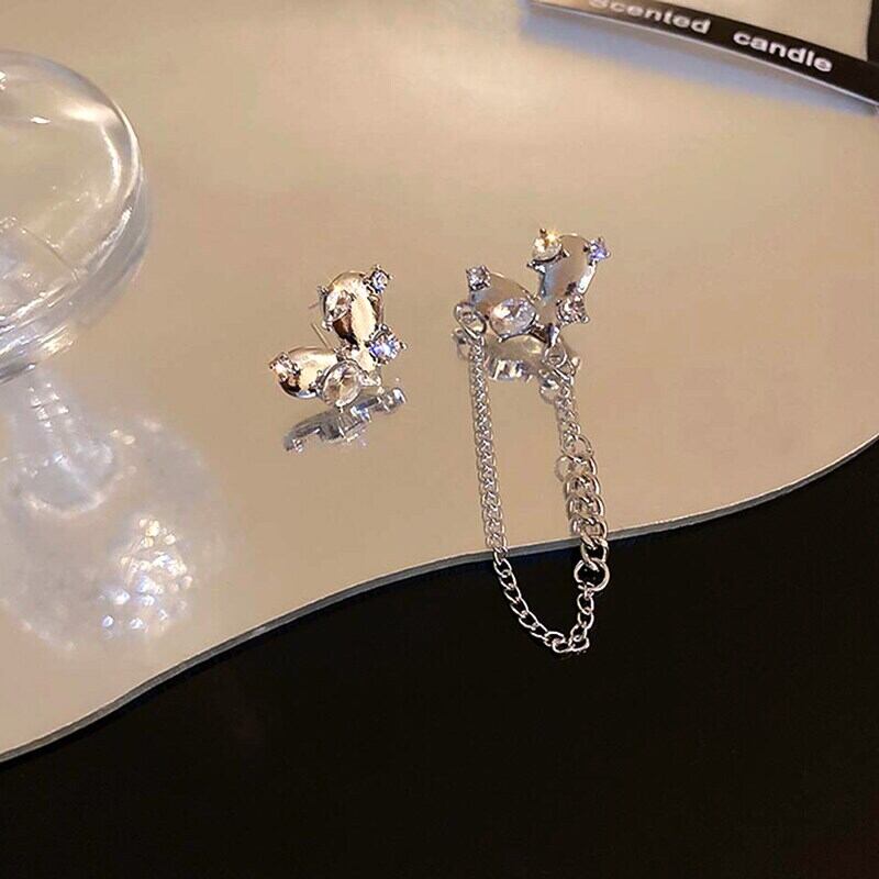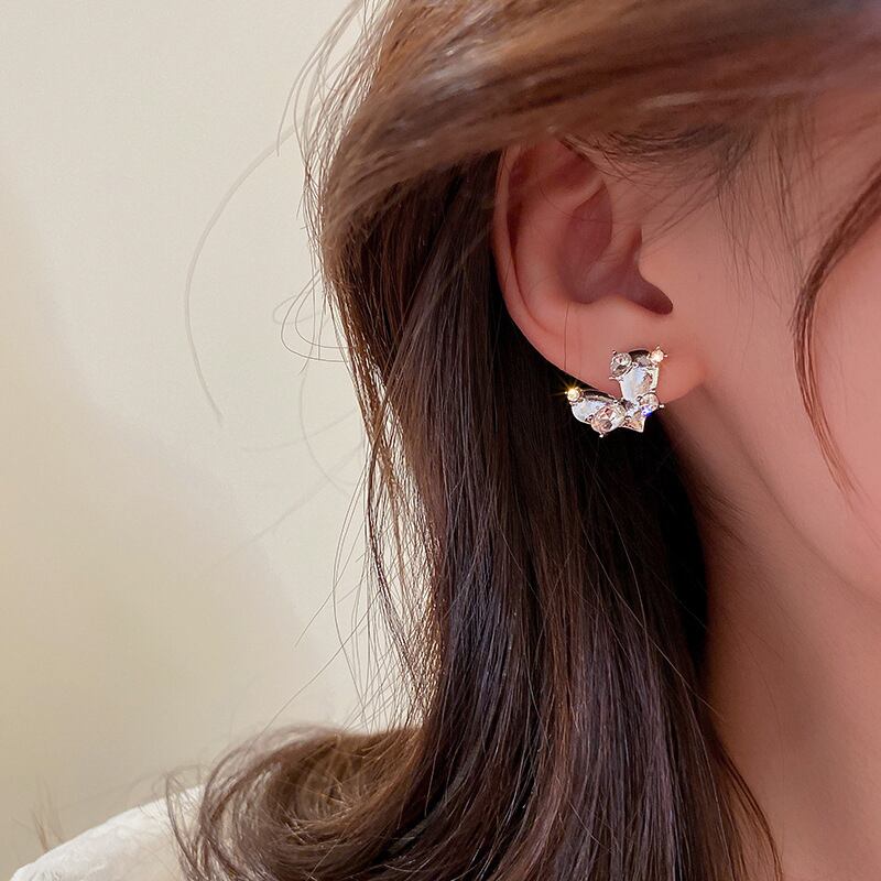 シルバーメッキピーチハート Tel イヤリング女性ガール非対称ジュエリー AAA ジルコン S925 シルバー針 指輪 銀