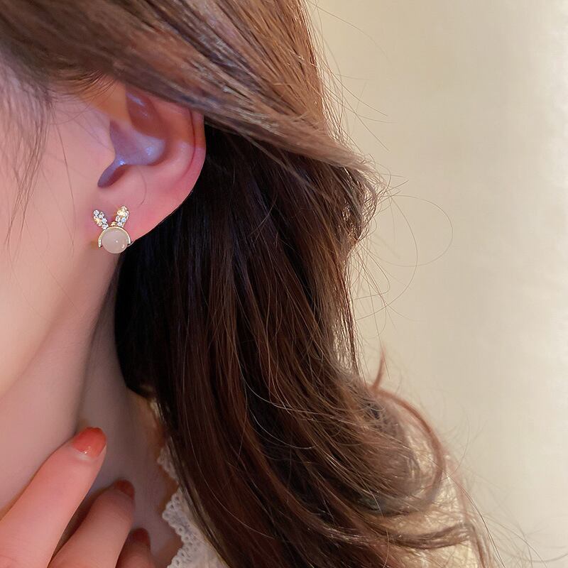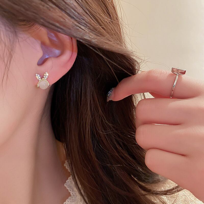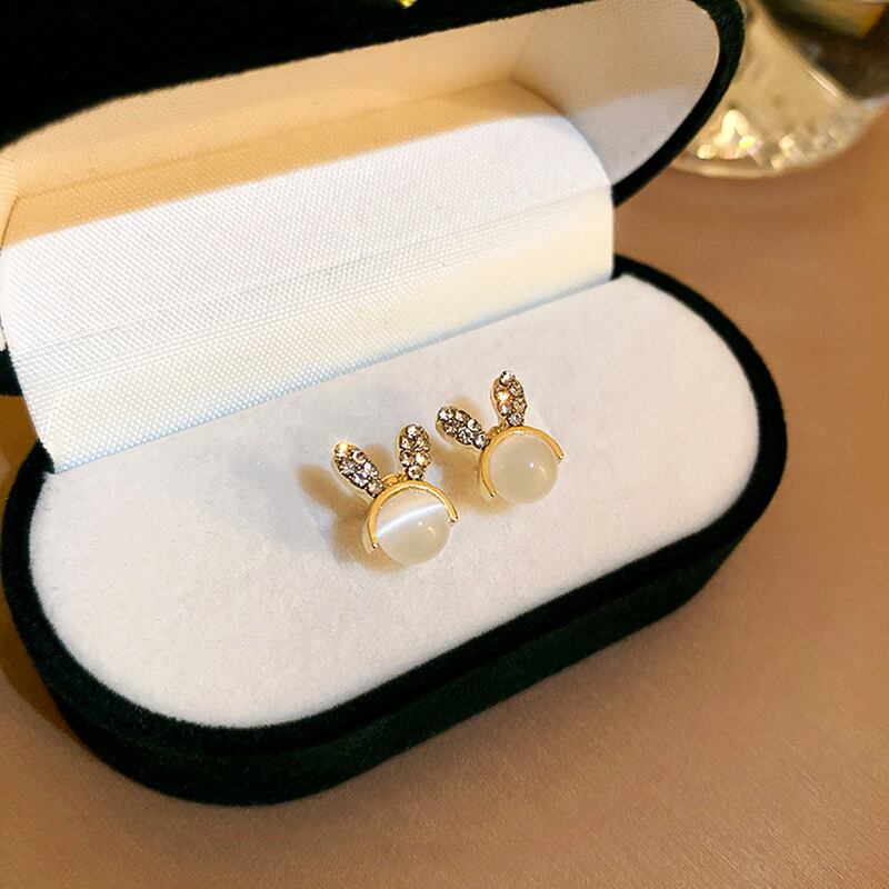 トレンディな 14 18K リアルゴールドメッキかわいいオパールリトルバニーイヤリング女性ガールジュエリー S925 シルバーニードルスタッドジルコン 大人ガーリー スウィート キュート カジュアル 蛋白石 指輪 銀