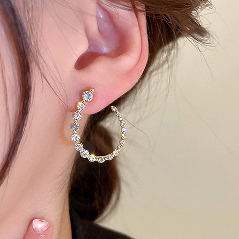 トレンディな 14 18K リアルゴールドメッキラウンドウォーターイヤリング女性ジュエリーシャイニー AAA ジルコンクリスタル 925 シルバー針 指輪 銀