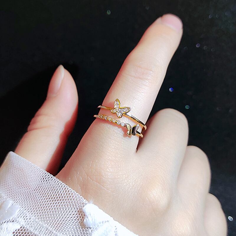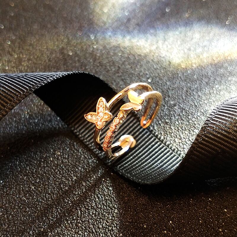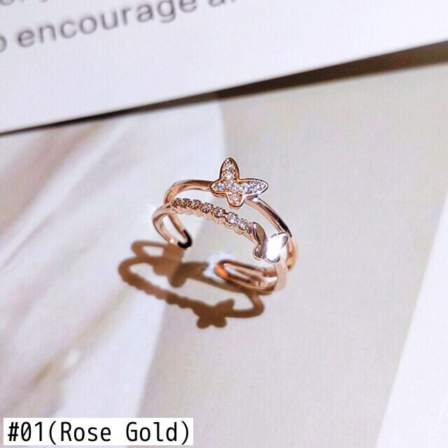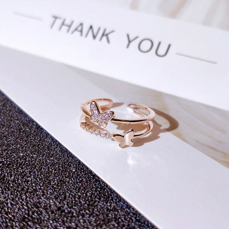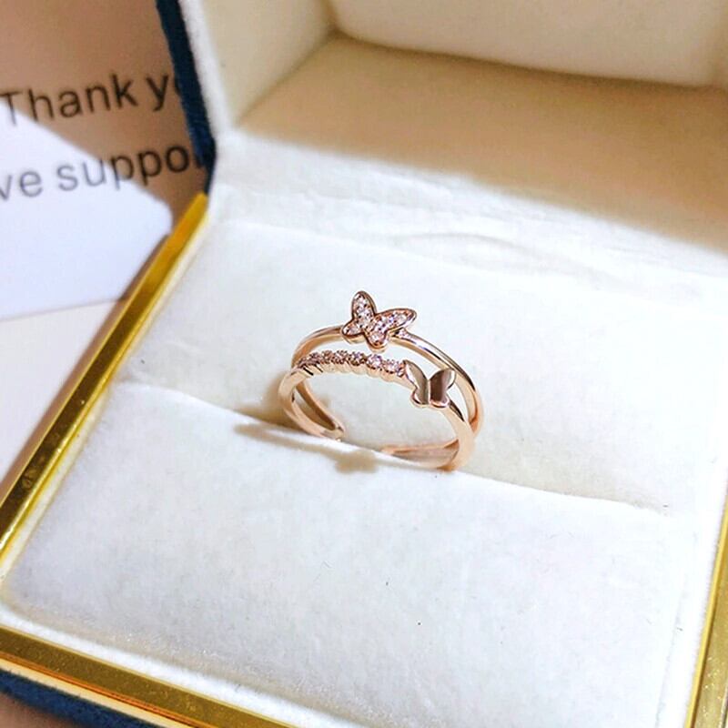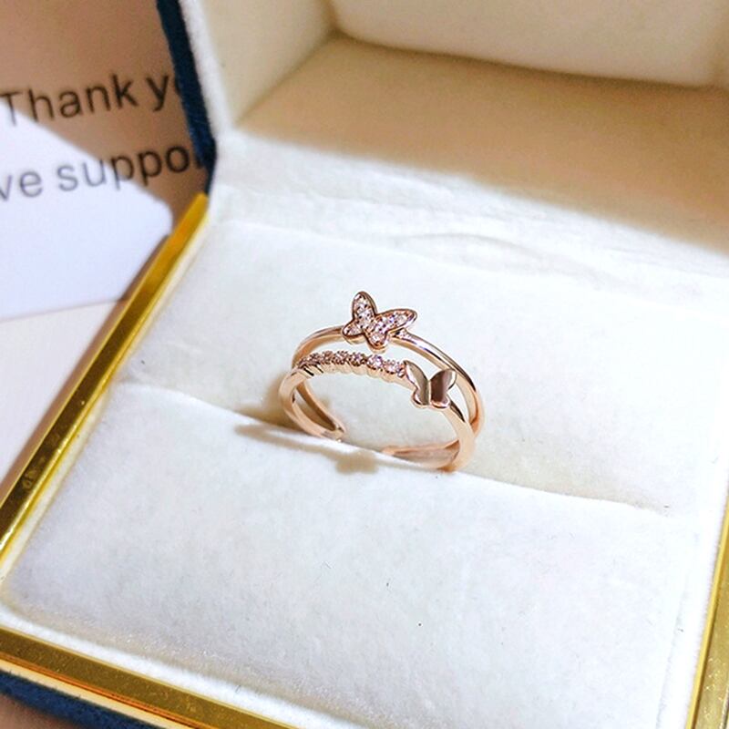 トレンディなチャーム 14 18k ローズゴールドバタフライリング女性調節可能なオープニングアクセサリージュエリーシャイニージルコンウェディングギフトホット アジャスタブル 指輪