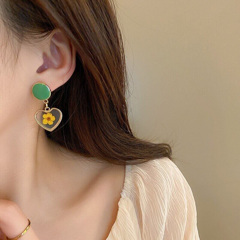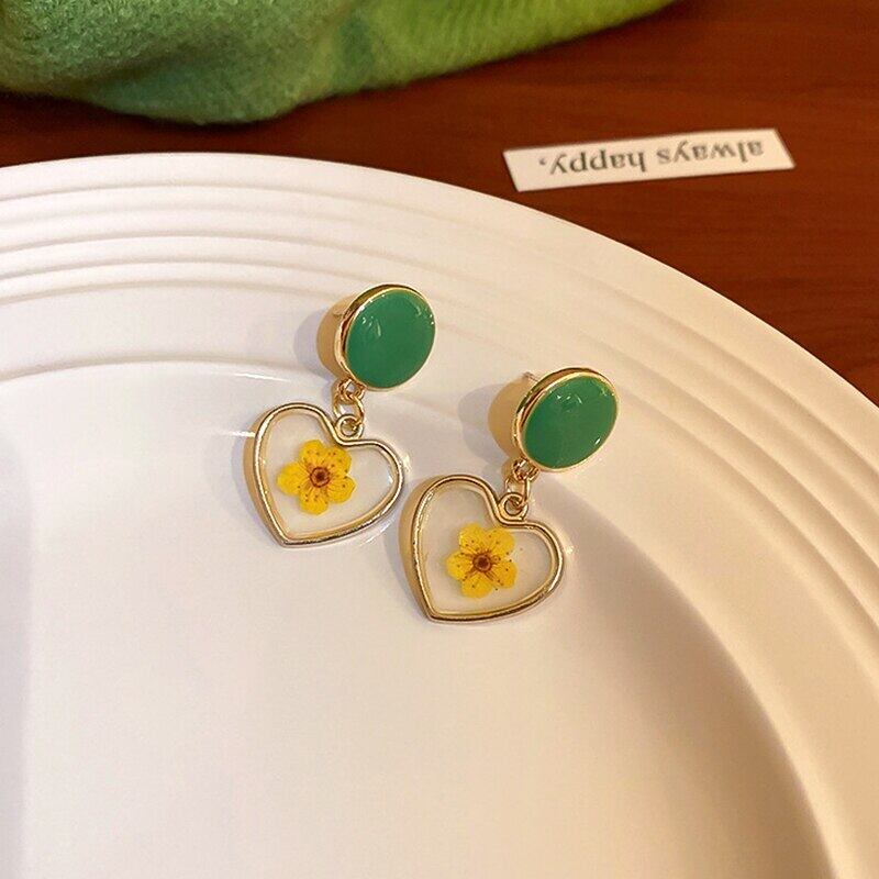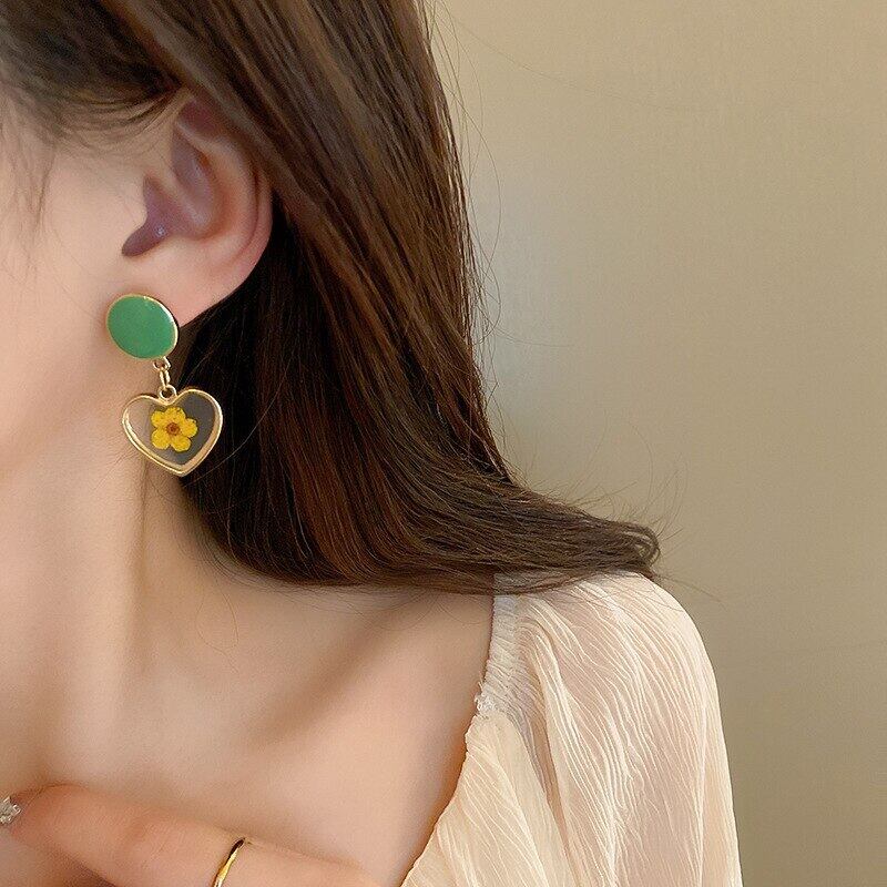 トレンディな 14 18K リアルゴールドメッキラウンドエナメルプリントハートイヤリング女性ガールジュエリー S925 シルバー針ギフト 指輪 銀