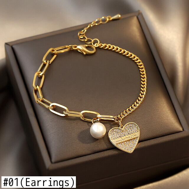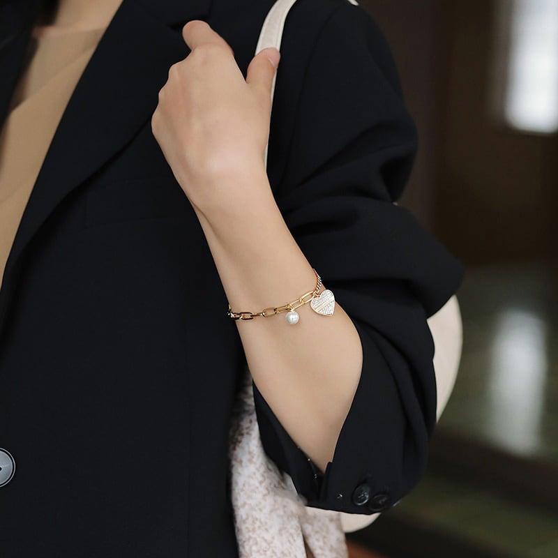 トレンディな 14 18k リアルゴールド愛のハート形の真珠のペンダントブレスレット女性ガールアクセサリー気質ジュエリー AAA ジルコン パール