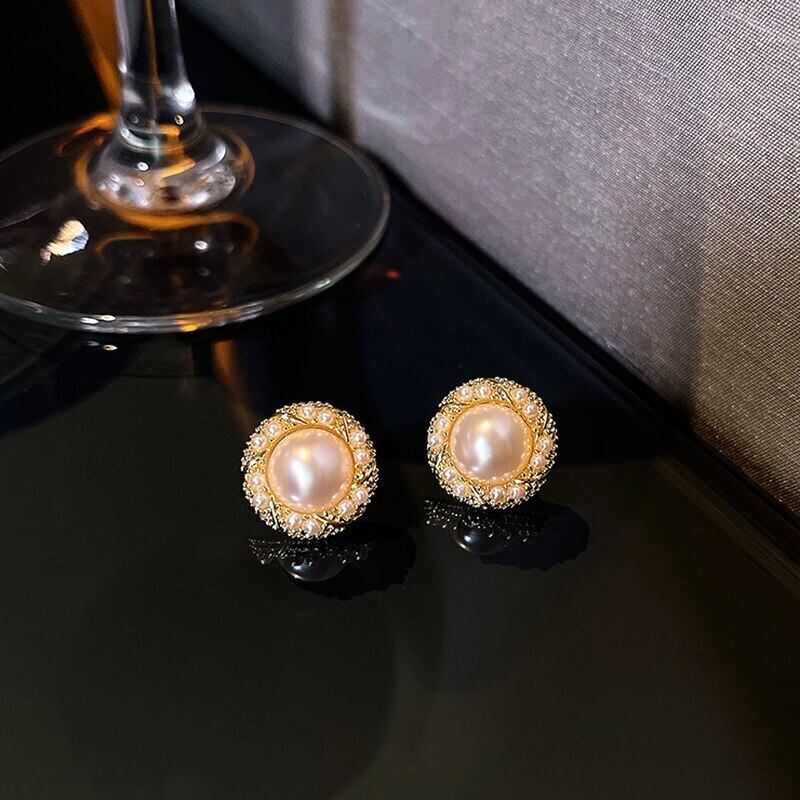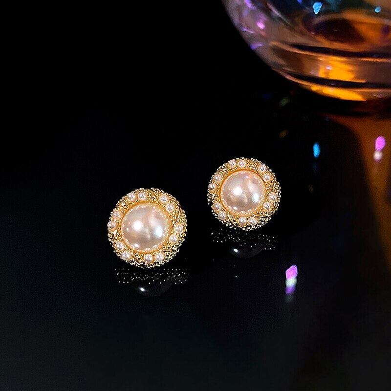 トレンディファイン 14 18K リアルゴールドメッキラウンドバロックパールイヤリング女性ガールジュエリー AAA ジルコン S925 シルバーニードルスタッドギフト 真珠 指輪 銀