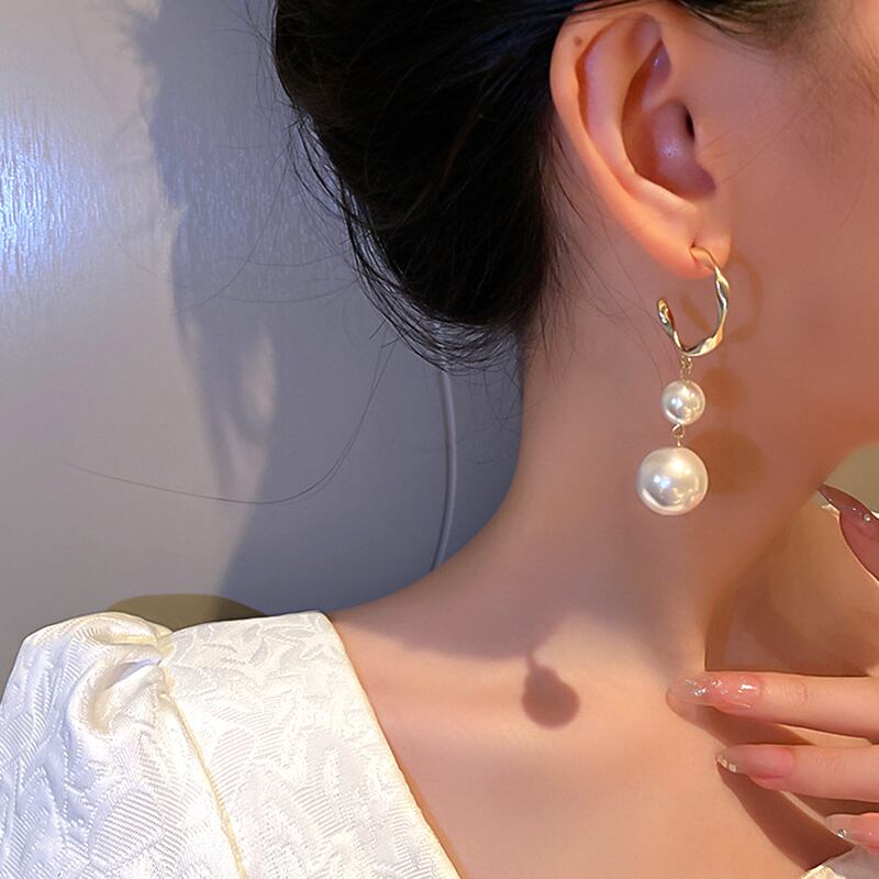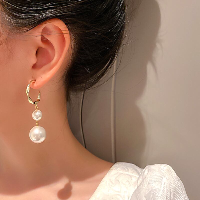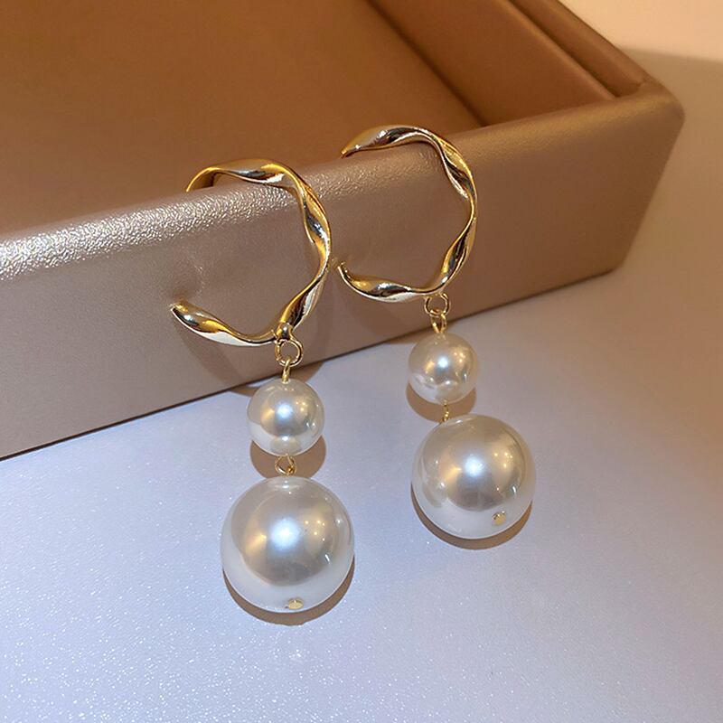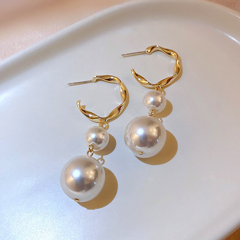 トレンディファイン 14 18K リアルゴールドビッグパールイヤリング女性気質ジュエリー S925 シルバーニードルウェディングパーティー 真珠 指輪 銀