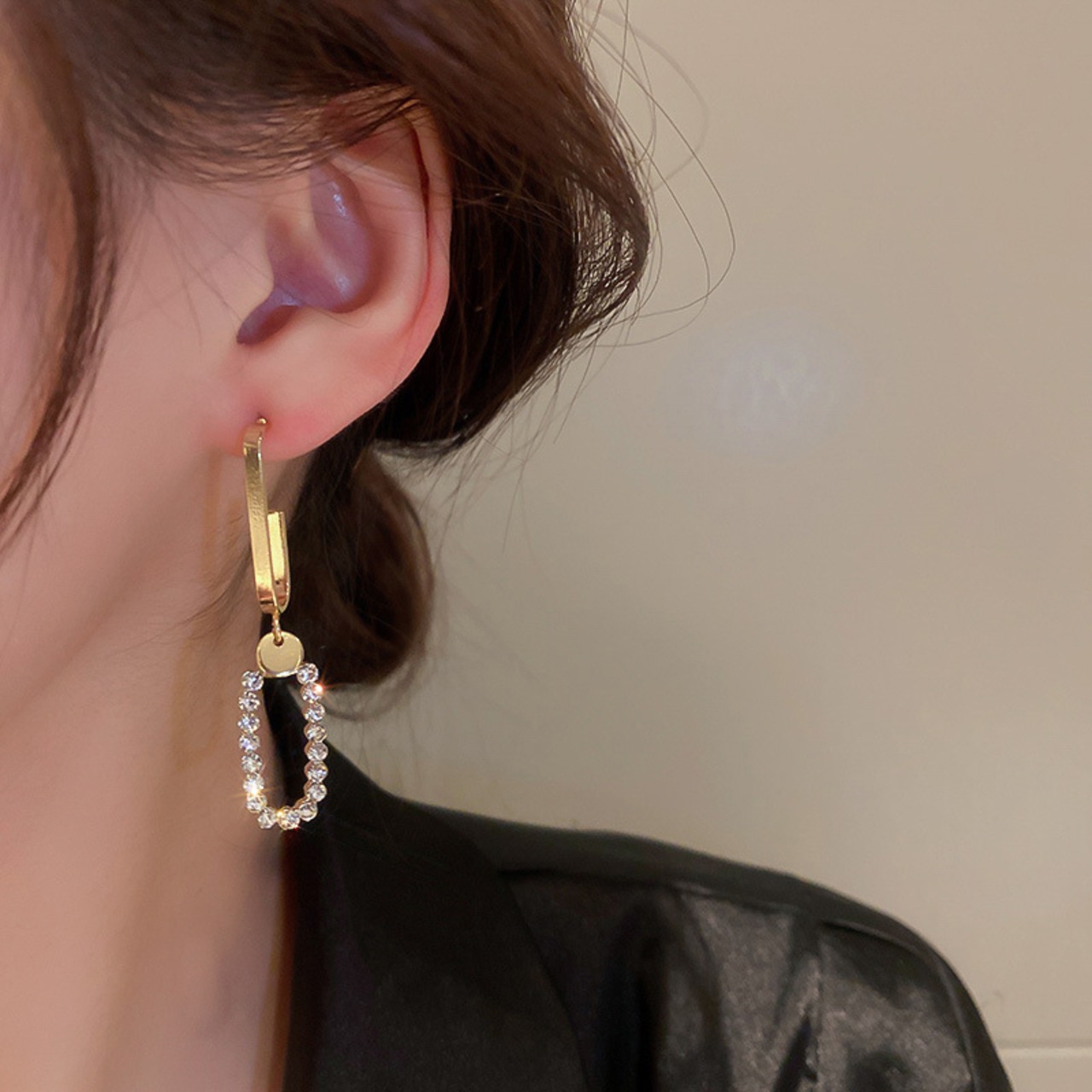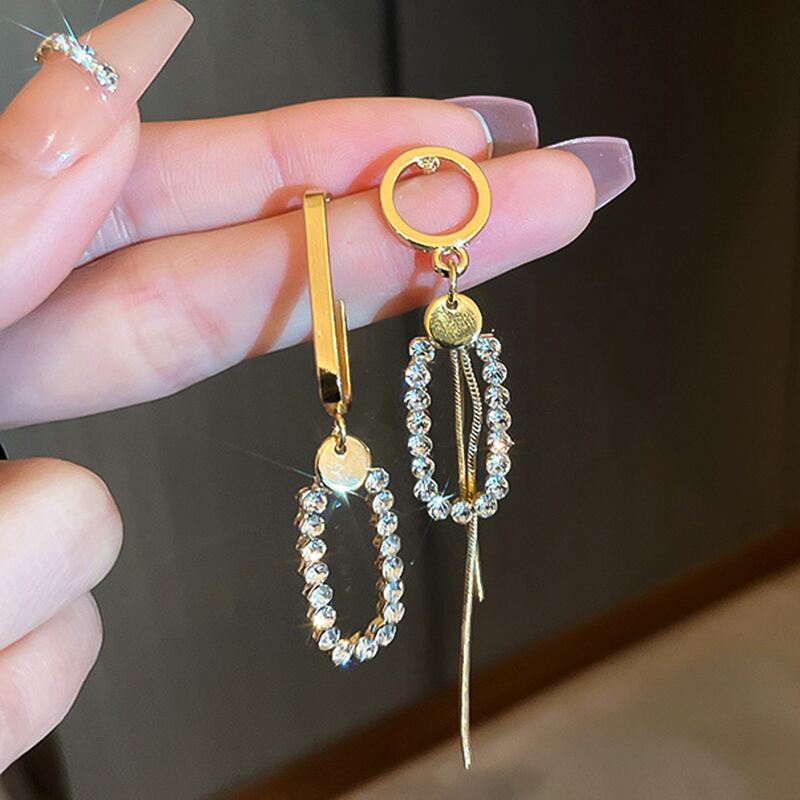トレンド 14 18K ゴールドメッキ幾何ラウンド Tel イヤリング女性ガール非対称ジュエリー S925 シルバー針ジルコン 指輪 銀