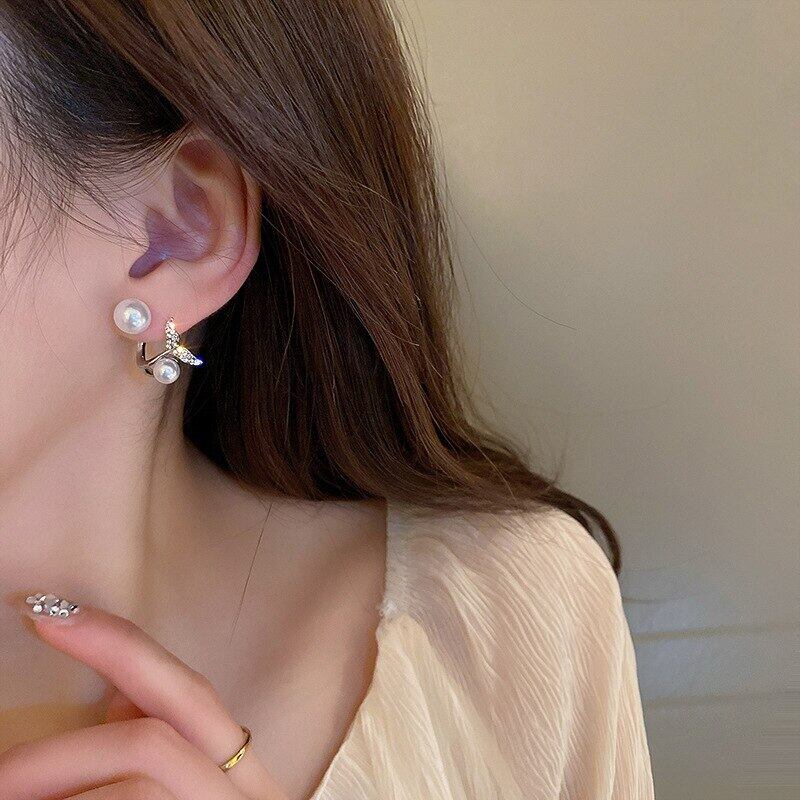 ファインマーメイドテールパールイヤリング女性ガール気質ジュエリー AAA ジルコニア S925 シルバーニードルスタッドパーティーギフト 真珠 指輪 銀 風信子石