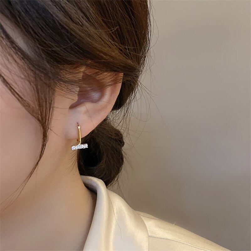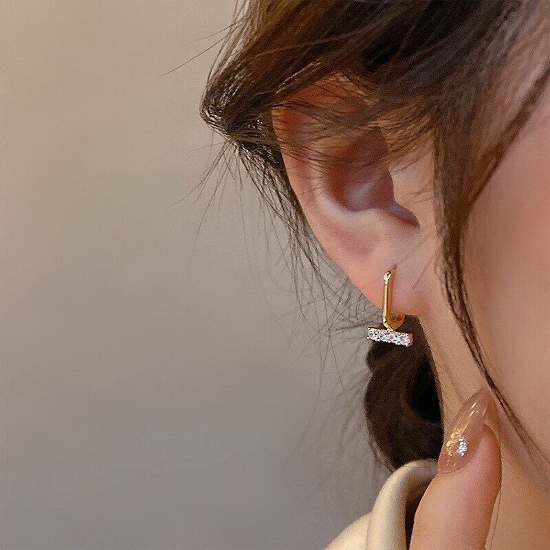トレンディな 14 18k リアルゴールドメッキ幾何学スクエアフープイヤリング女性ガールジュエリーバックルタイプシャイニー AAA ジルコニア 指輪 スクウェア 風信子石