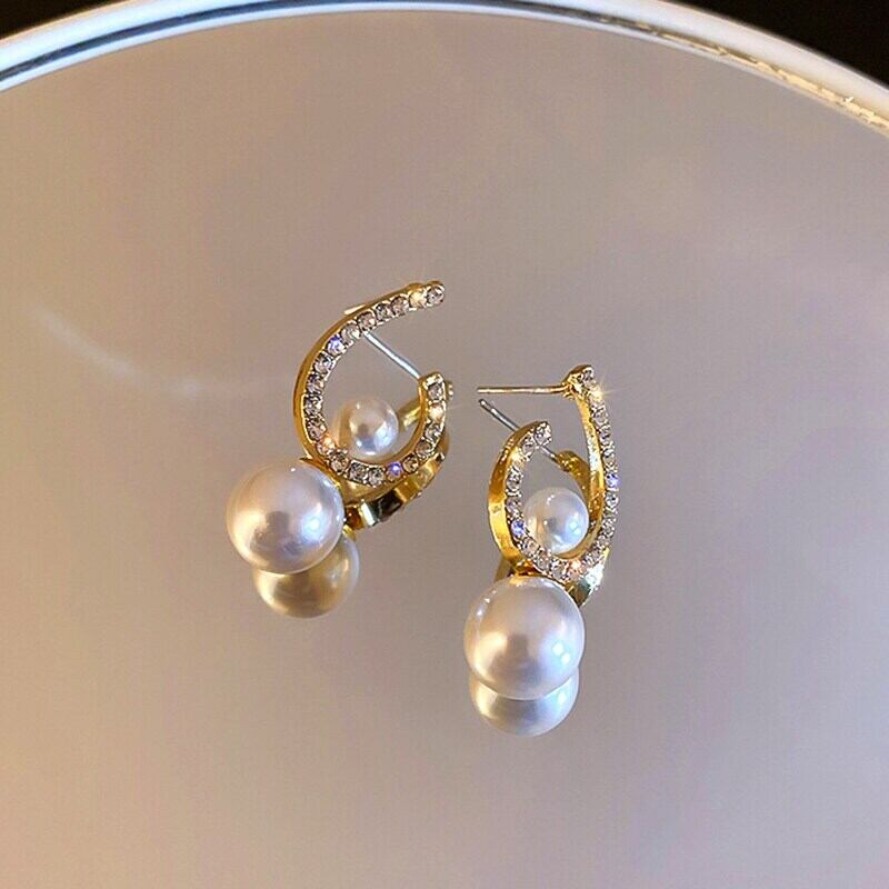トレンディな 14 18K ゴールドメッキ幾何学真珠のイヤリング女性ガールジュエリー S925 シルバー針 AAA ジルコニア パール 指輪 銀 風信子石