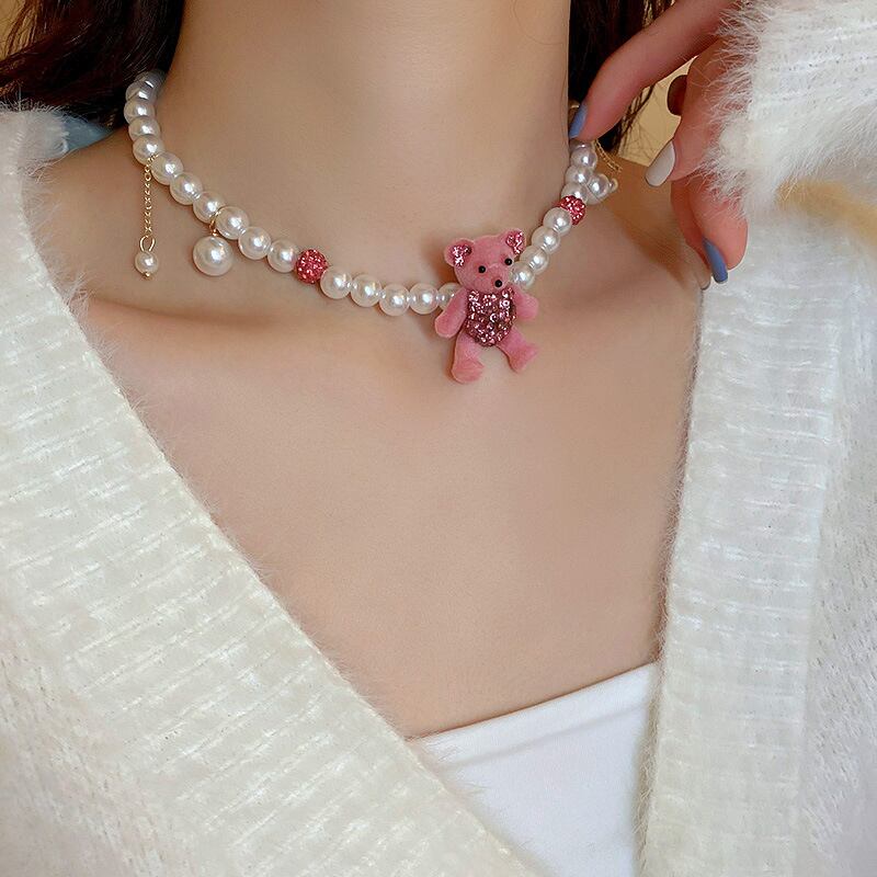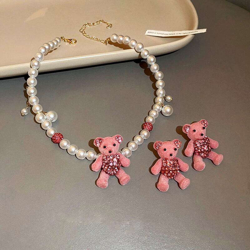 ファインパールピンク植毛リトルベアイヤリング女性ガールジュエリー AAA ジルコン S925 シルバーニードルスタッドパーティーギフト 真珠 指輪 銀
