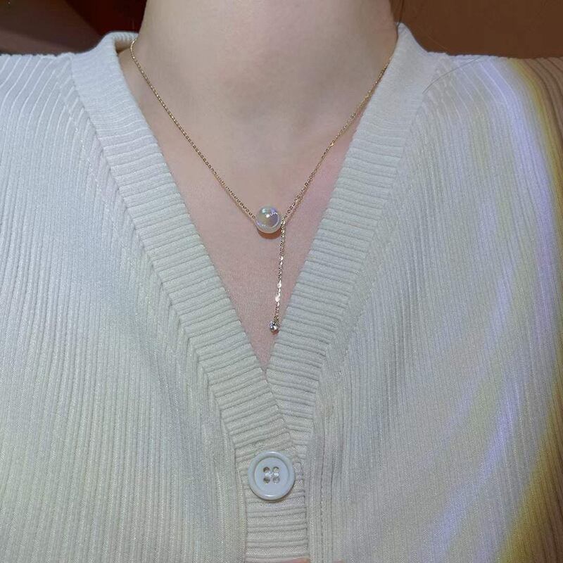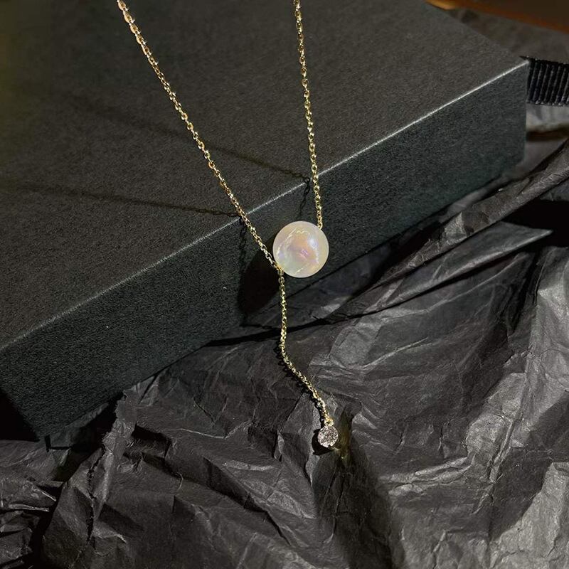 トレンディファイン 14 18K ゴールドメッキマーメイドパールジルコンペンダントネックレス女性ガールアクセサリーチェーンジュエリーギフト レース 真珠