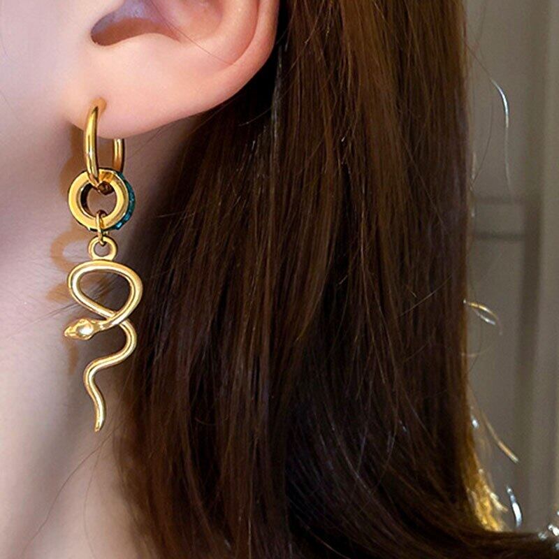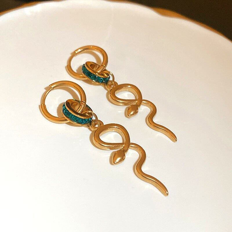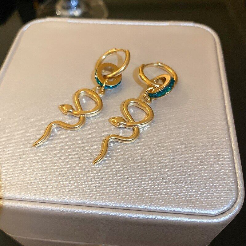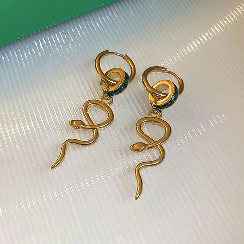トレンディな 14 18K リアルゴールドメッキスネークシェイプイヤリング女性ジュエリー 925 シルバー針チタン鋼 AAA ジルコン 指輪 銀