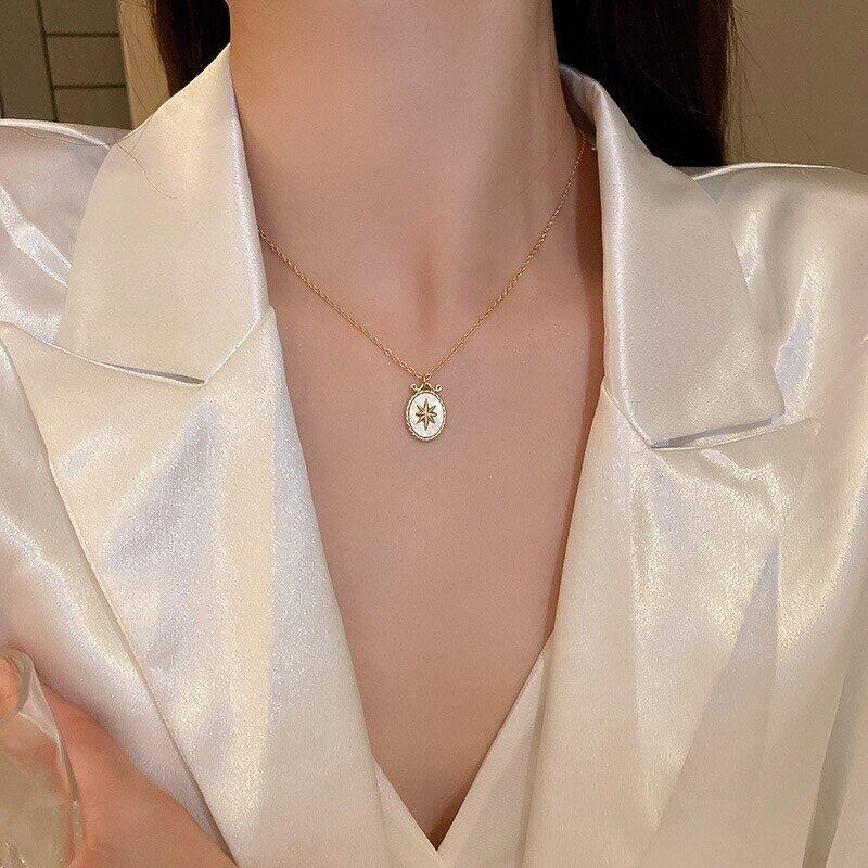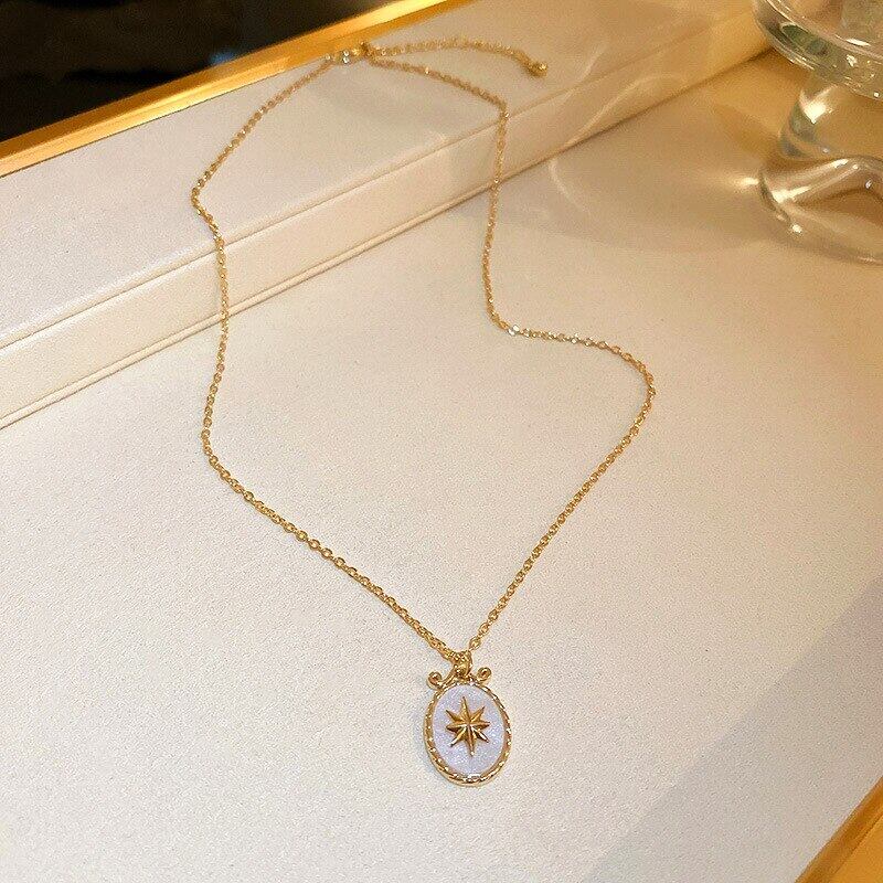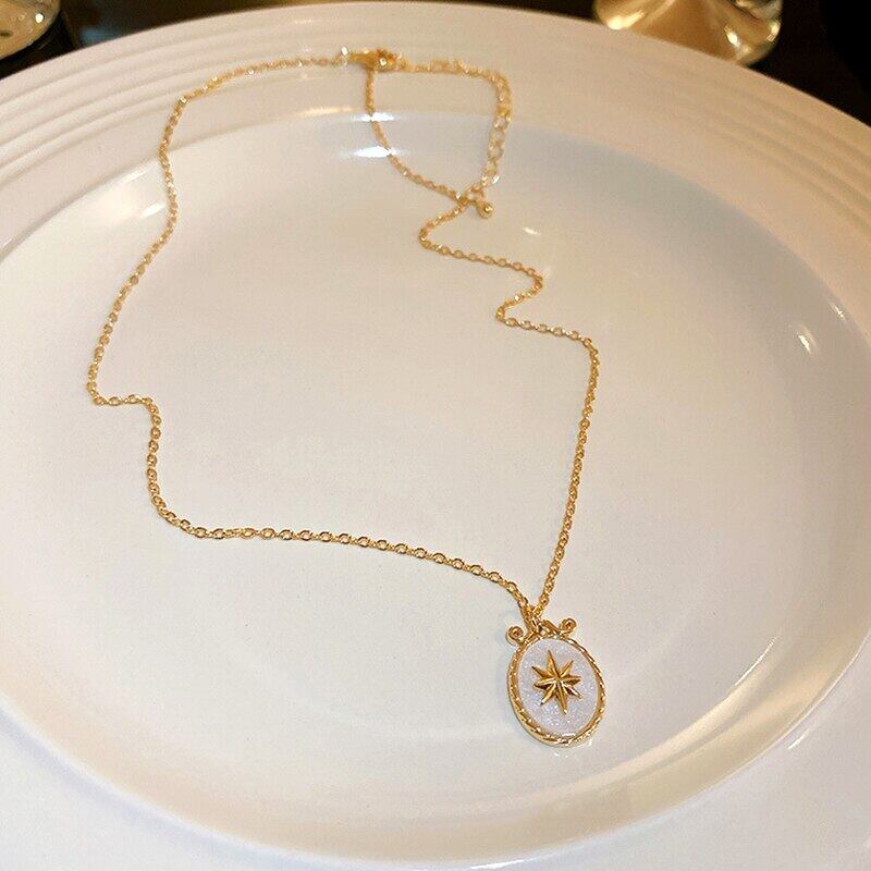14 18k ゴールドメッキオーバル八角形スターペンダントチェーンネックレス女性ガール気質ジュエリーパーティーインホットギフト レース