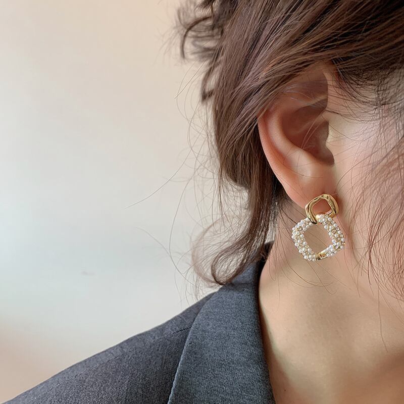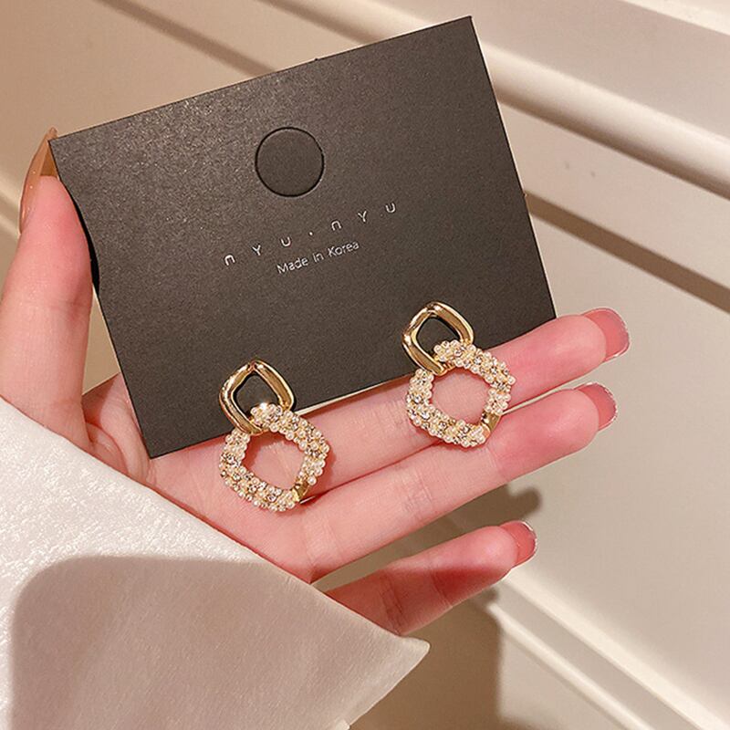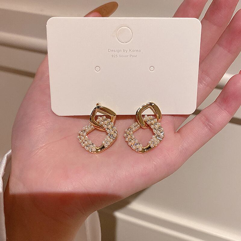 ファイン 14 18k リアルゴールドメッキ菱形真珠イヤリング女性ガールジュエリー AAA ジルコン S925 シルバー針結婚式 パール 指輪 銀
