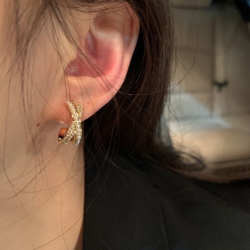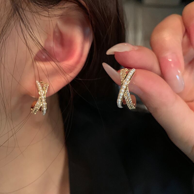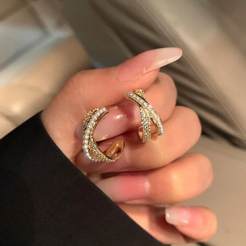 トレンディな 14 18K リアルゴールドメッキ幾何学パールクロス C シェイプイヤリング女性ガールジュエリー S925 シルバーニードルスタッド AAA ジルコン 真珠 指輪 銀