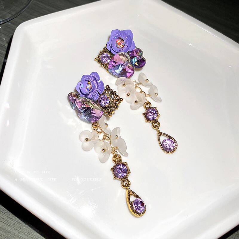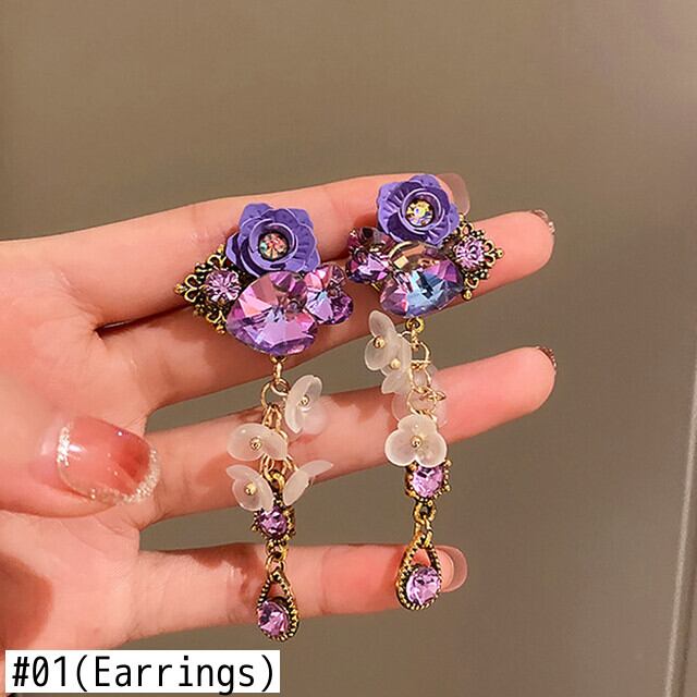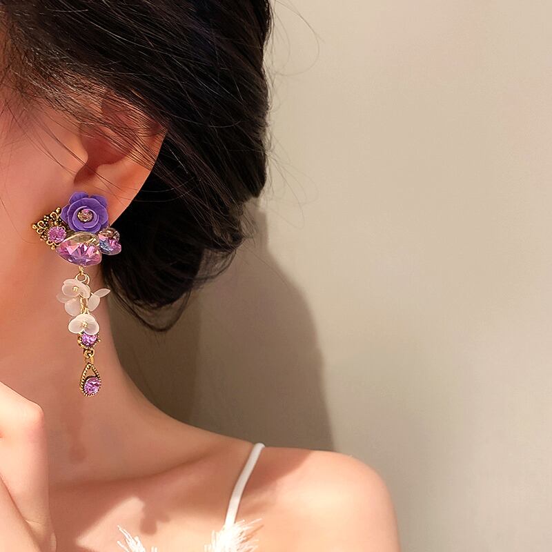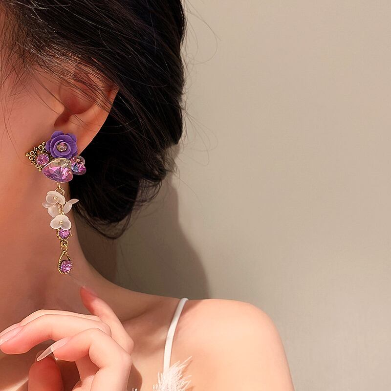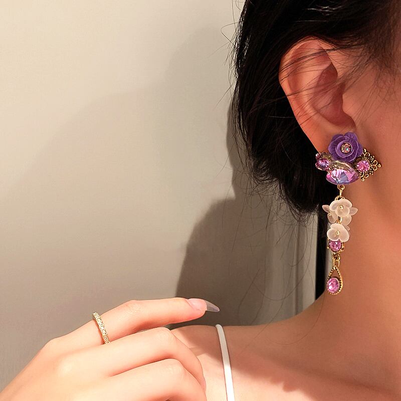 ファイン 14 18K リアルゴールドハートクリスタルパープルフラワーイヤリング女性ジュエリー AAA ジルコニア S925 シルバーニードルパーティー 指輪 フラワーデザイン 銀 風信子石