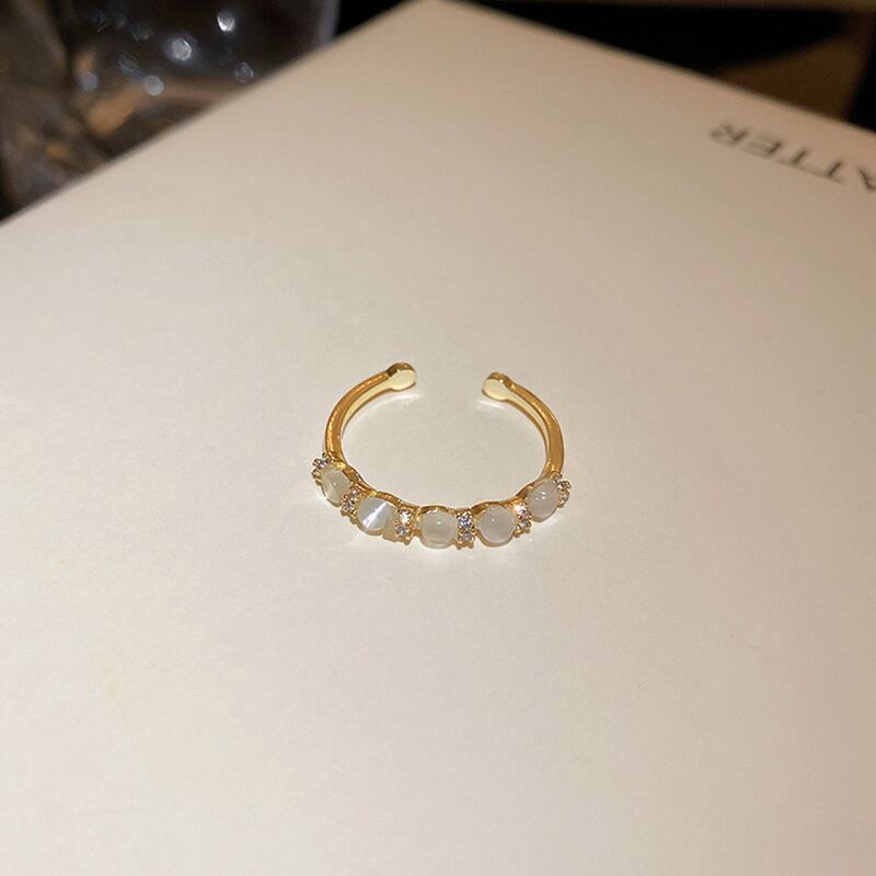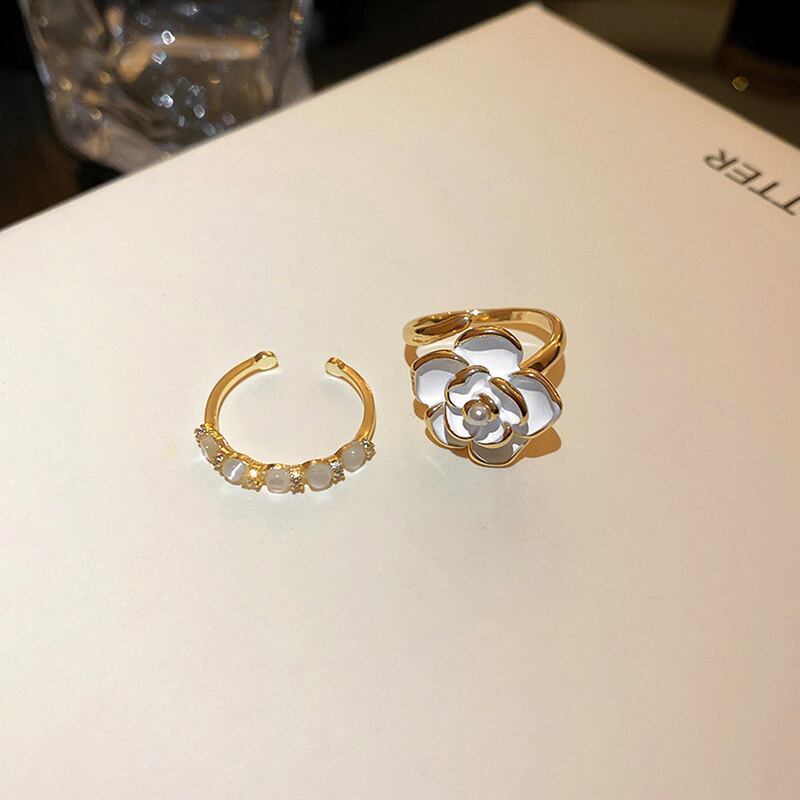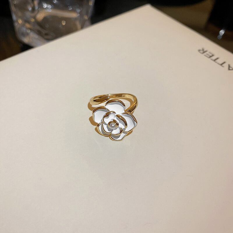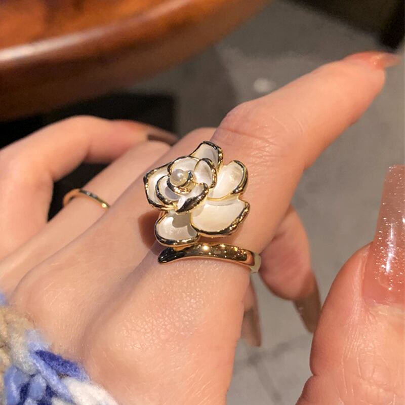 14 18k リアルゴールドメッキパールエナメル花リング女性ガール調節可能なオープニング気質ジュエリー AAA ジルコン アジャスタブル 指輪 真珠 フラワーデザイン