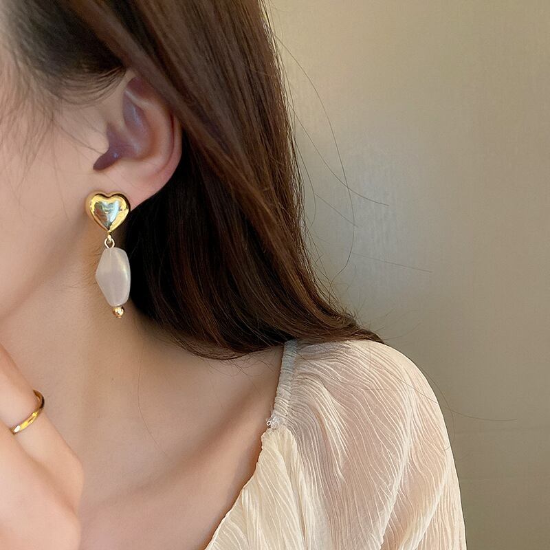 14 18k ゴールドメッキハート幾何不規則イヤリング女性ガールジュエリー S925 シルバー針パーティーファインギフト 指輪 銀