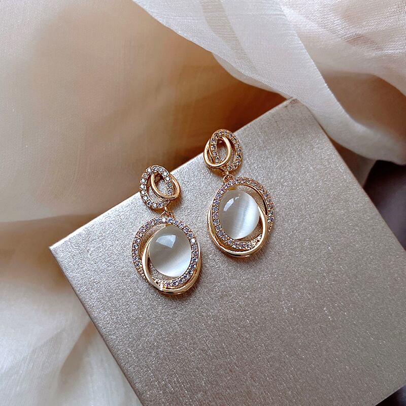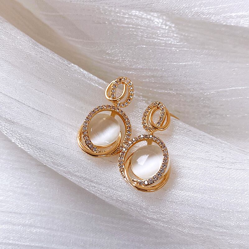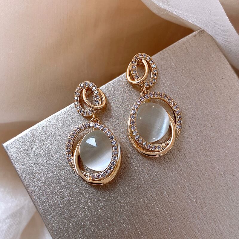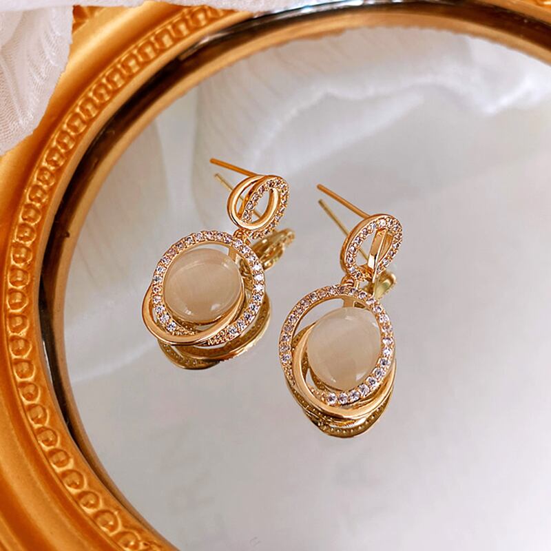トレンディな 14 18K ゴールドメッキ幾何学三次元オパールイヤリング女性ガールジュエリー S925 シルバー針 AAA ジルコニア 蛋白石 指輪 銀 風信子石