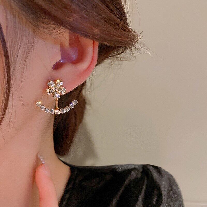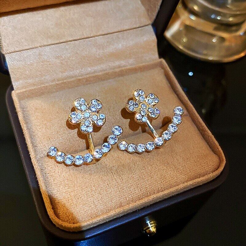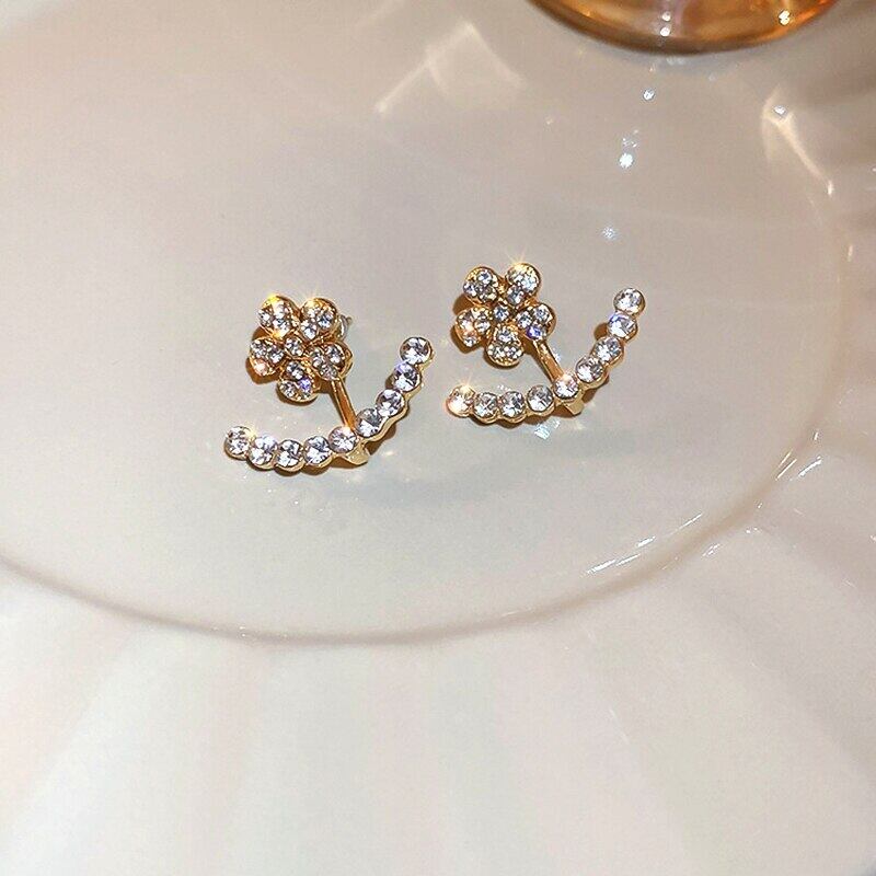 トレンディな 14 18K リアルゴールドメッキジルコン花イヤリング女性ガールジュエリー S925 シルバーニードルスタッド AAA ジルコン 指輪 フラワーデザイン 銀