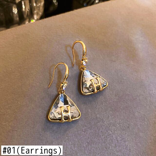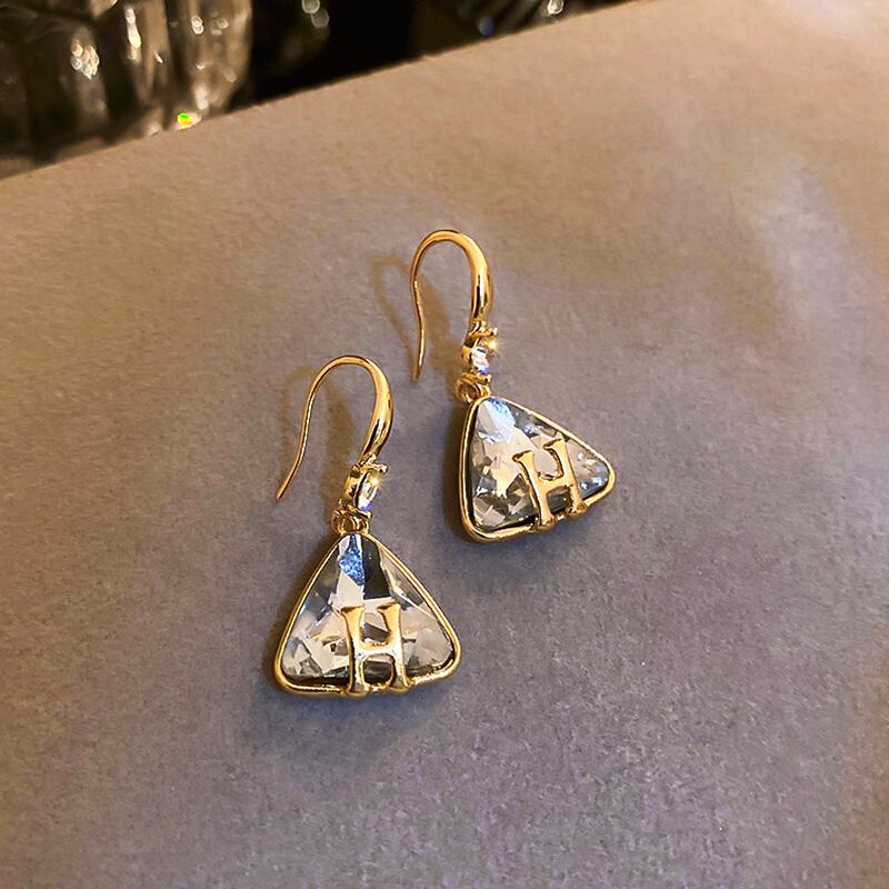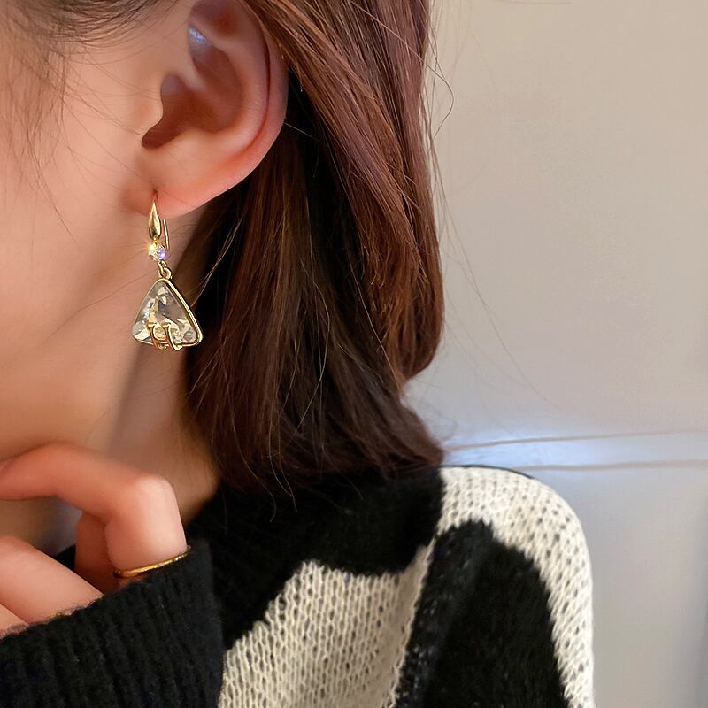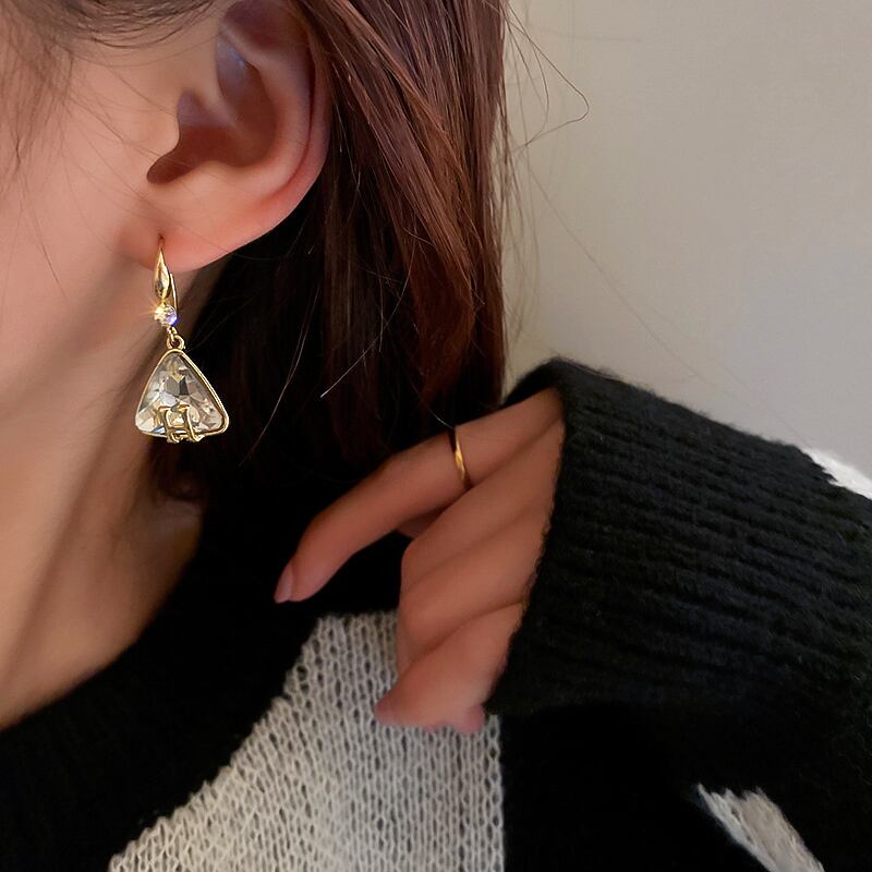 ファイン 14 18k ゴールド メッキ クリスタル トライアングル文字イヤリング女性ガール ジュエリー aaa ジルコニア S925 シルバー針 指輪 銀 風信子石