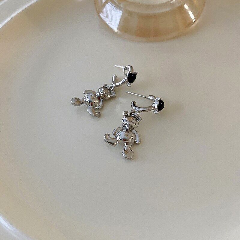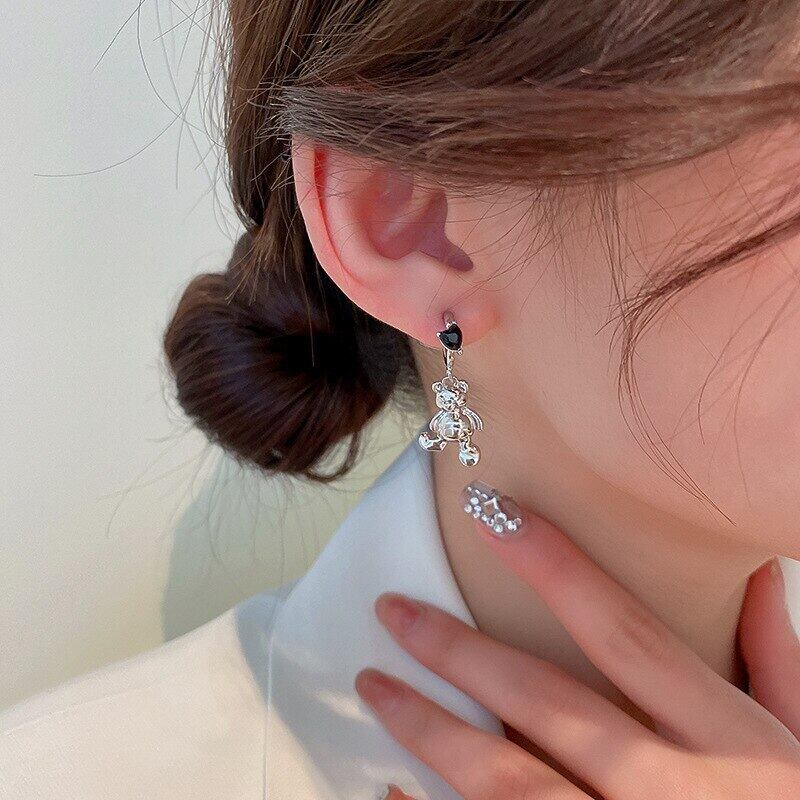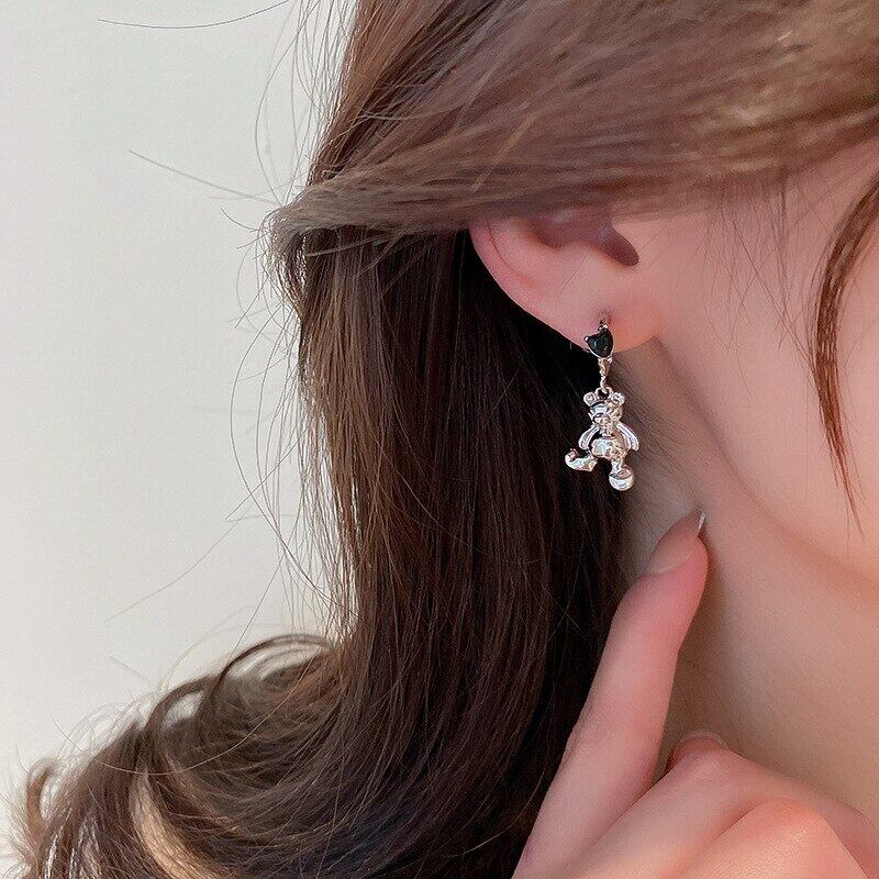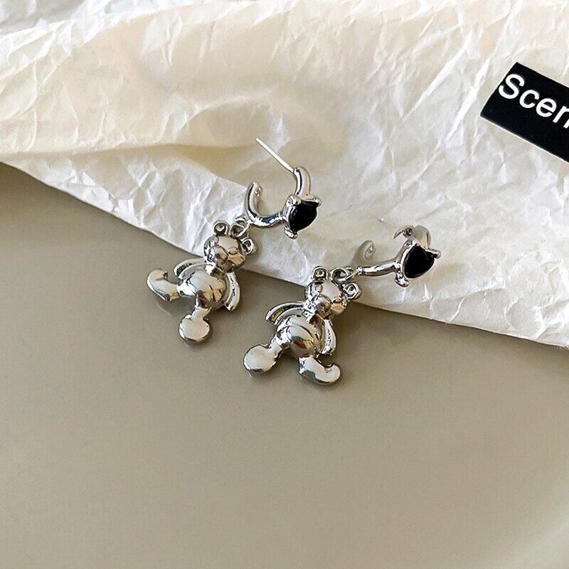 ファインシルバーメッキリトルベア C シェイプイヤリング女性ガールジュエリー AAA ジルコン S925 シルバーニードルパーティーギフト 指輪 銀