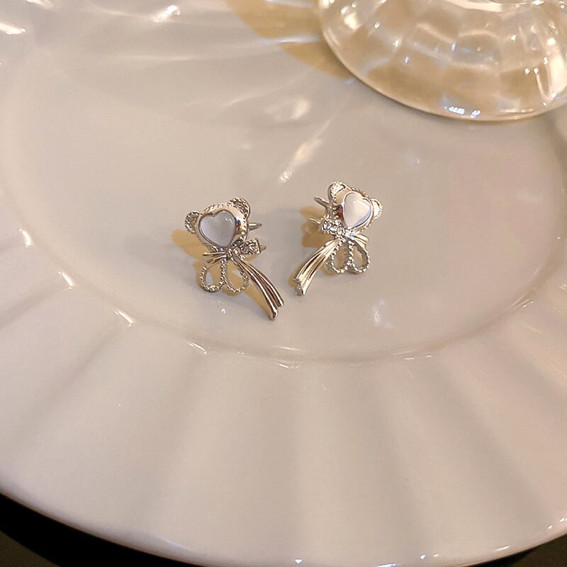 トレンディなシルバーメッキちょう結びハートリトルベアクリップイヤリング女性ガールジュエリー結婚式誕生日パーティーギフト リボン 指輪 銀